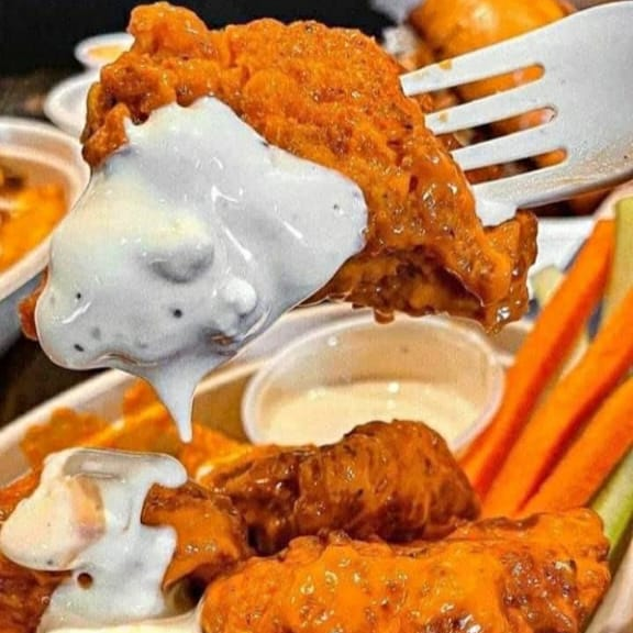 500 g de puros Boneless bañados en dos salsas, topping ranch