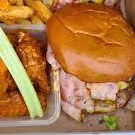 Pan, lechuga , dos carnes de hamburguesa,(110 gr aprox.) queso amarillo, aros de cebolla y dos piezas de boneless en su salsa favorita., Toping ranch y catsup