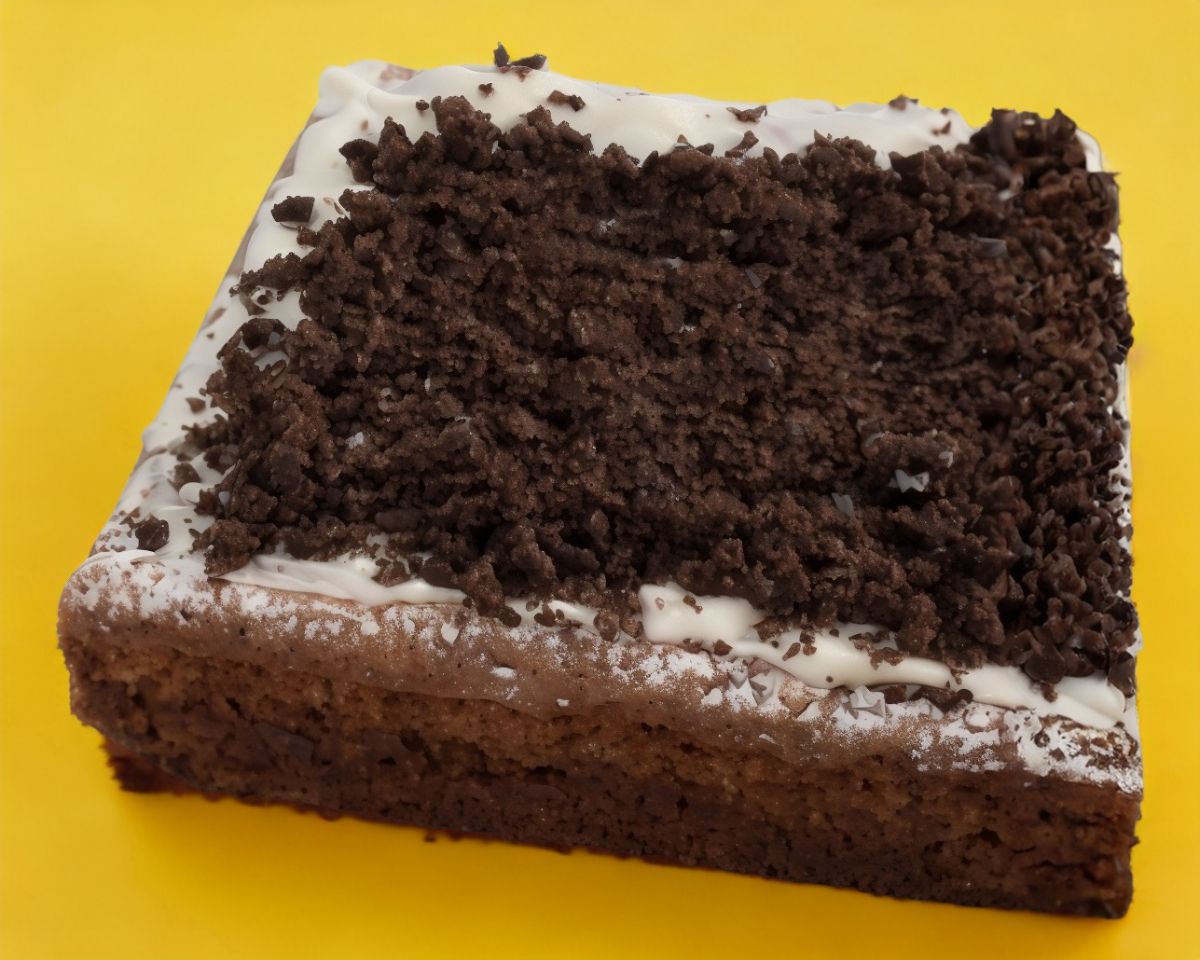 Brownie de chocolate cubierto de glaseado y oreo molida