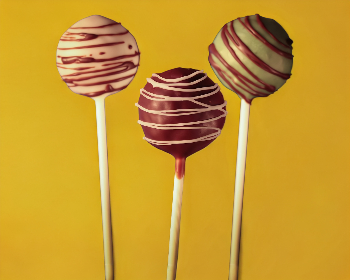 6 cake pops (Paletas de pastel cubiertas de chocolate).