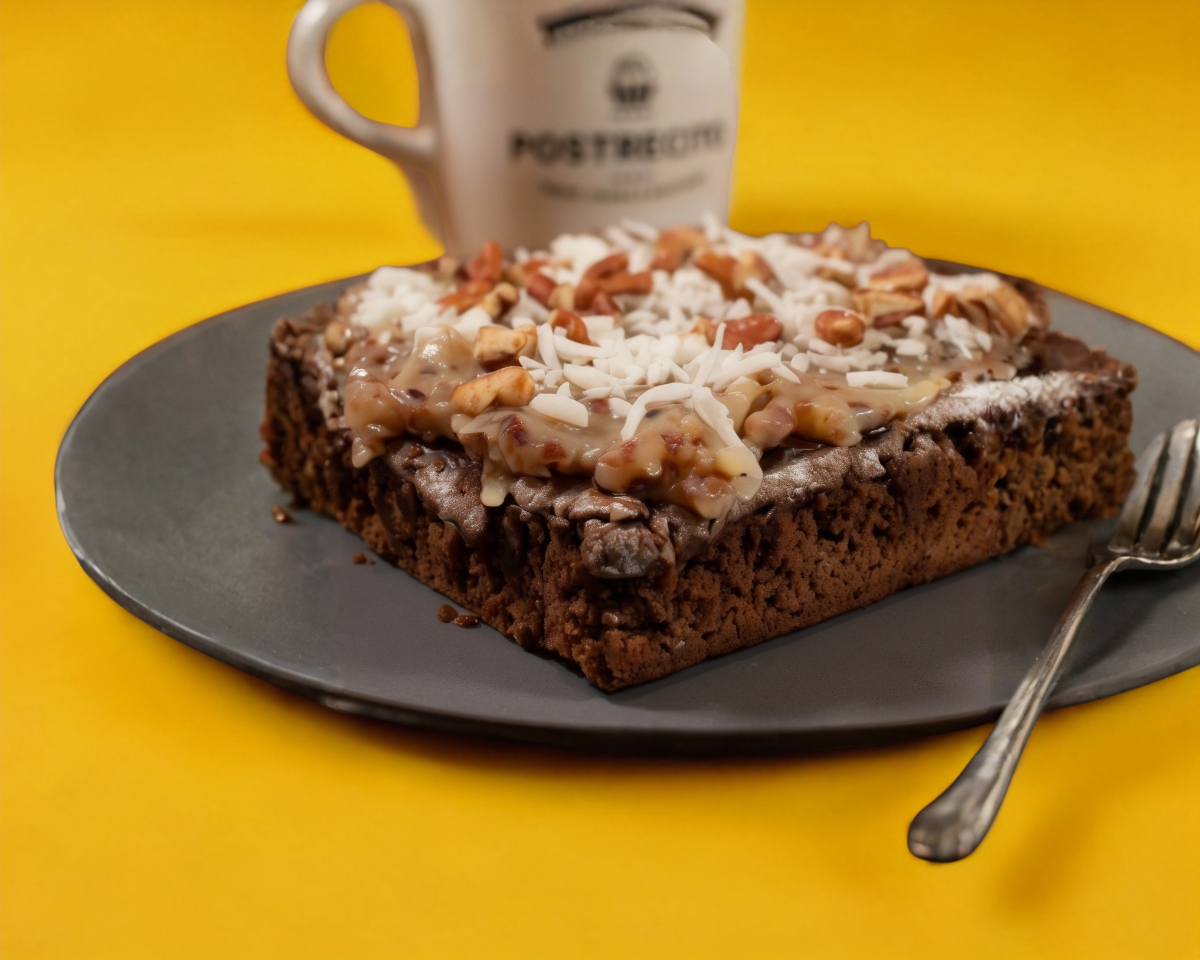Brownie de chocolate cubierto de betún alemán hecho con nuez y coco