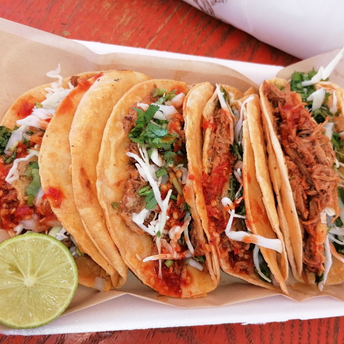 Orden de 4 tacos de una tortilla, con birria, repollo, cilantro, cebolla, limón y Salsa al gusto (las verduras van por separado).