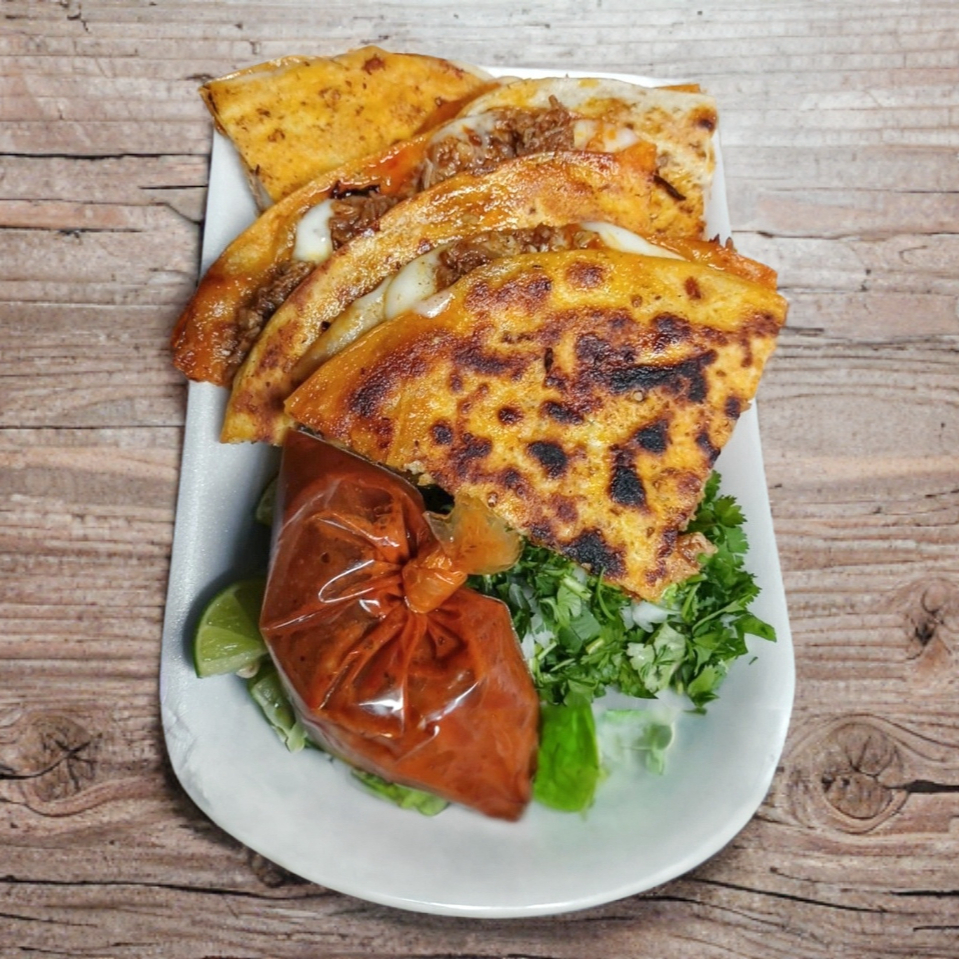 Quesibirrias Harina incluye salsas verdura y limon (porcion personal)