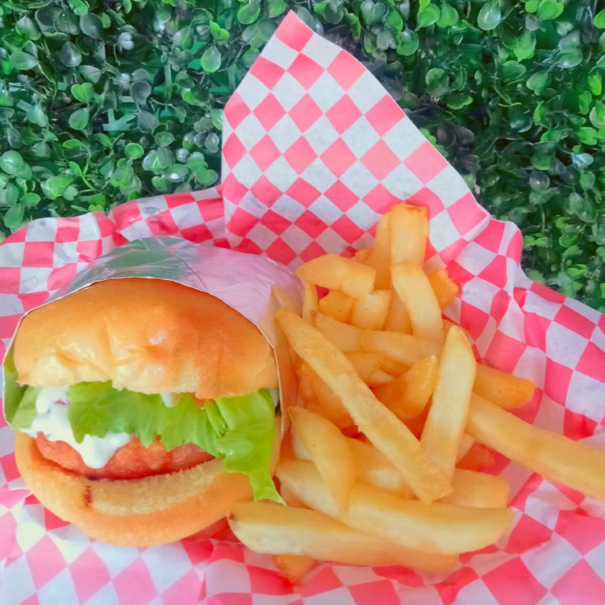 Deliciosa Hamburguesa de verdadera Pechuga de Pollo, Bañada en la salsa de tu elección, acompañada de papas fritas