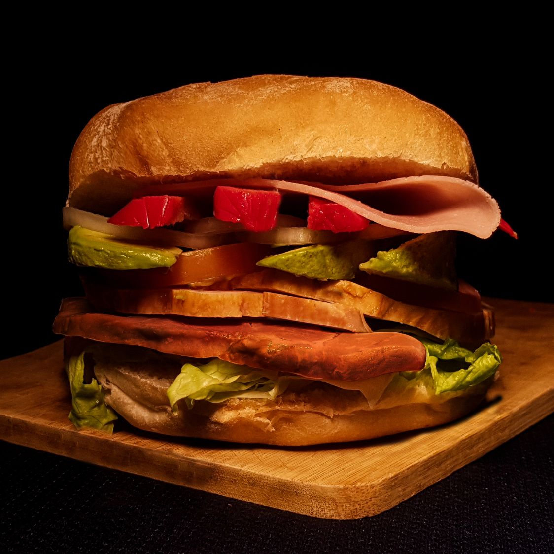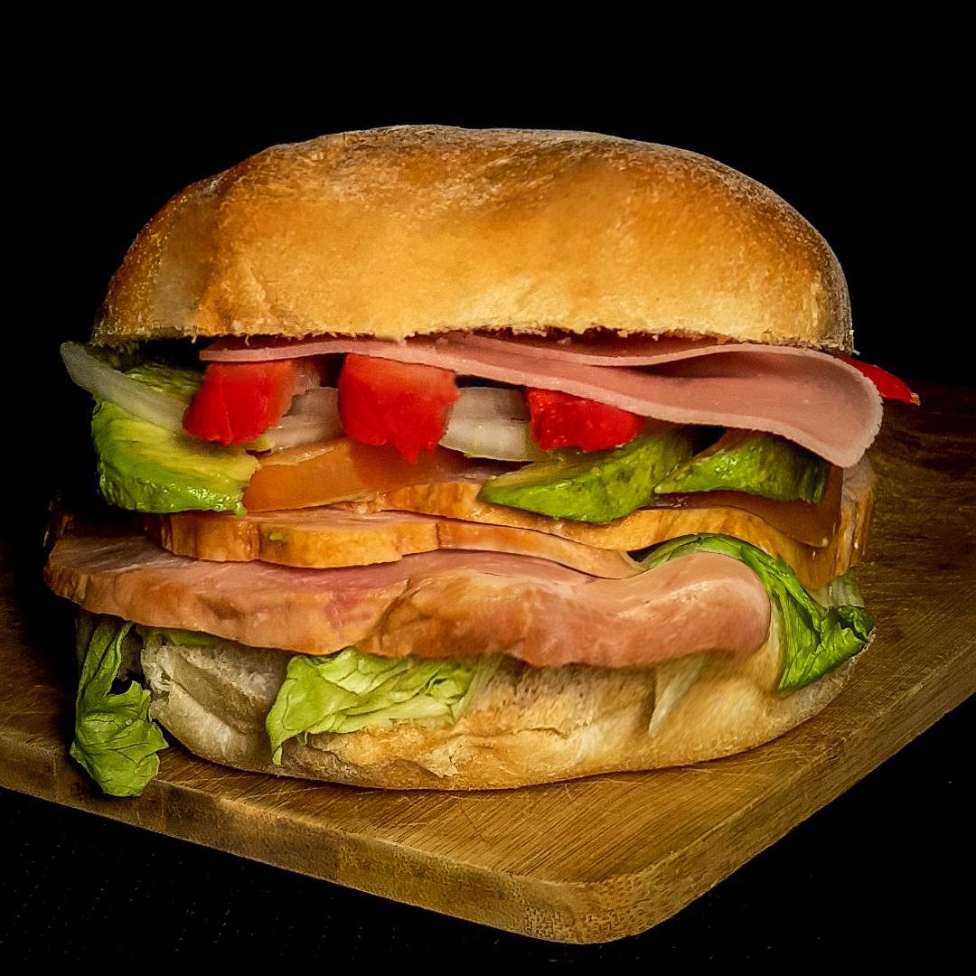 Chuleta ahumada, Queso, jamón, winny, aguacate, tomate, cebolla, lechuga y mayonesa.