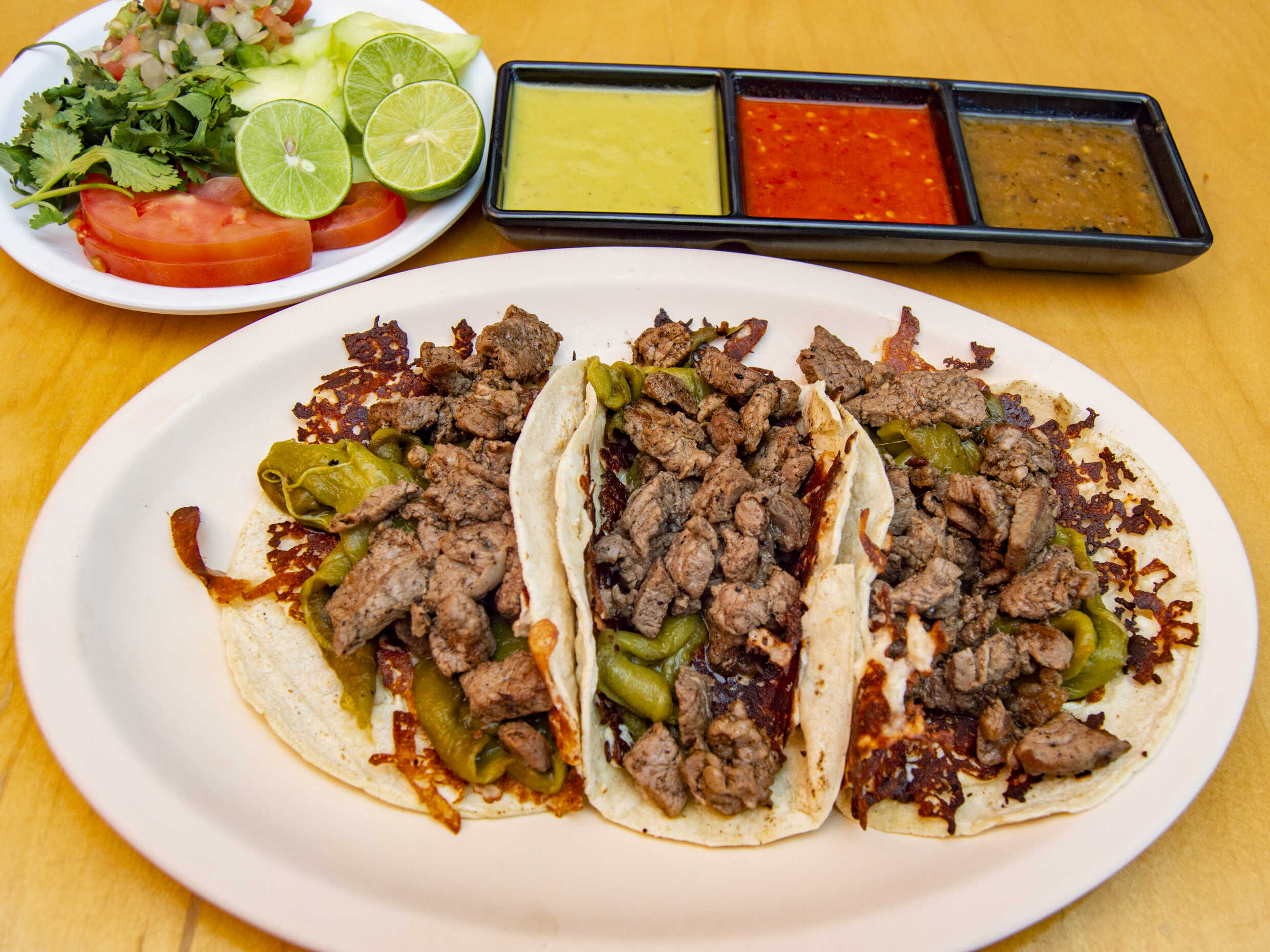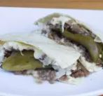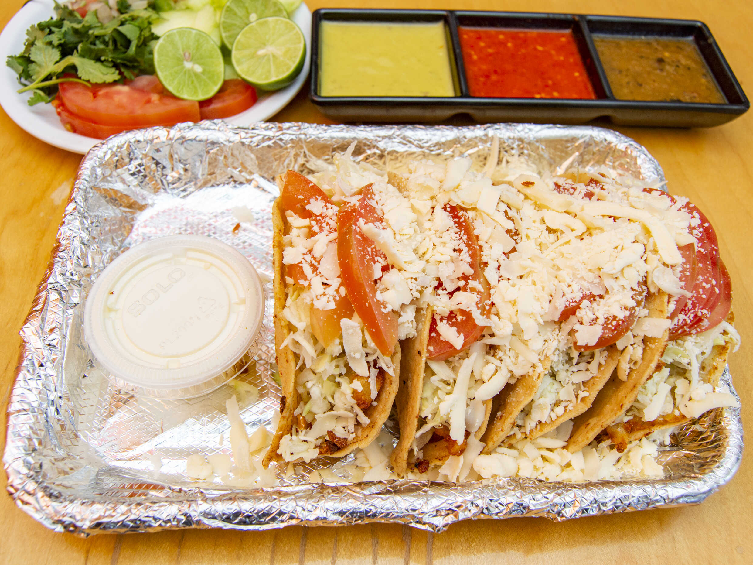 4 FLAUTAS CON CARNE DESHEBRADA DE RES ACOMPAÑADAS DE REPOLLO,TOMATE,QUESO RALLADO Y CREMA APARTE