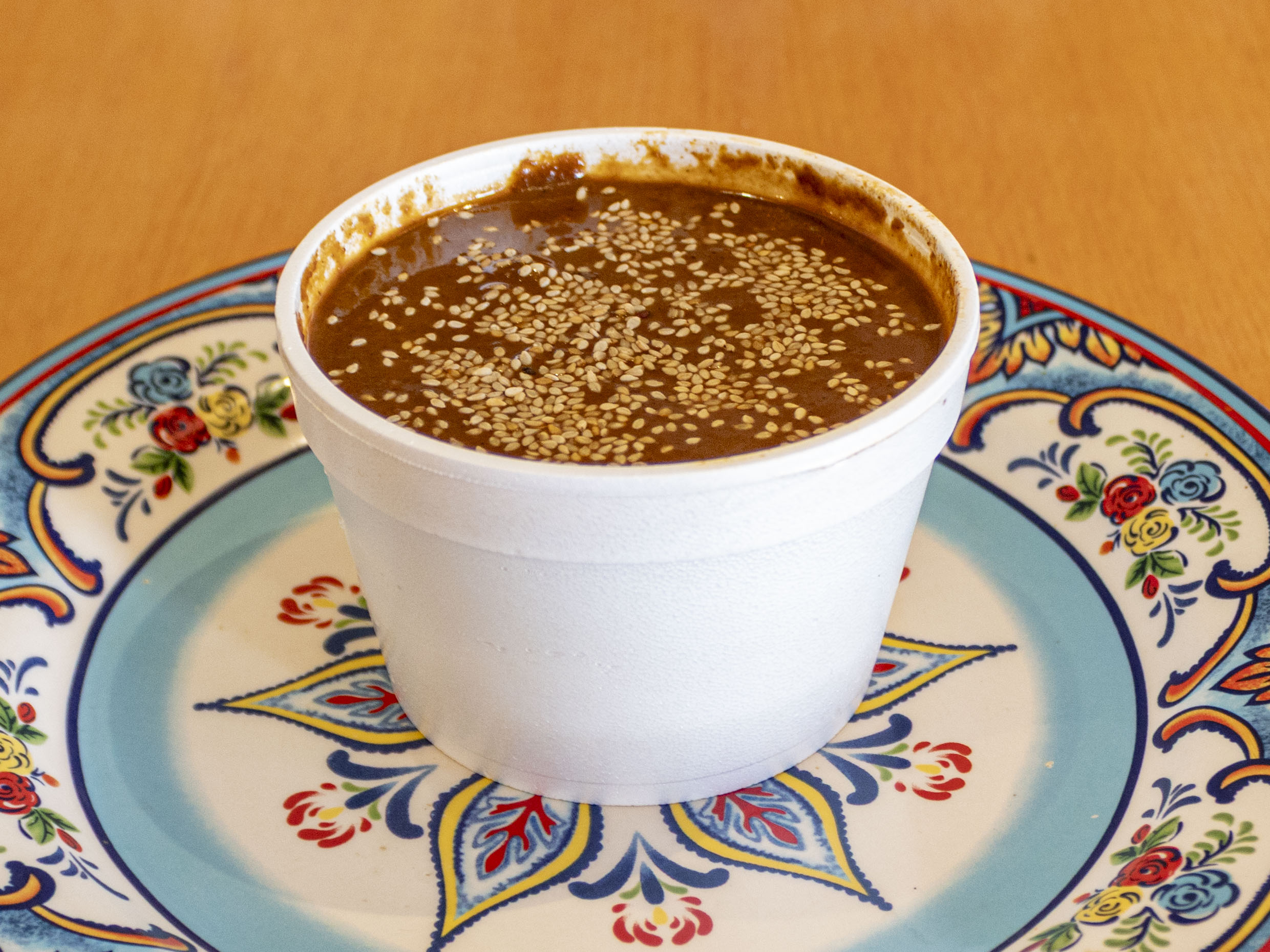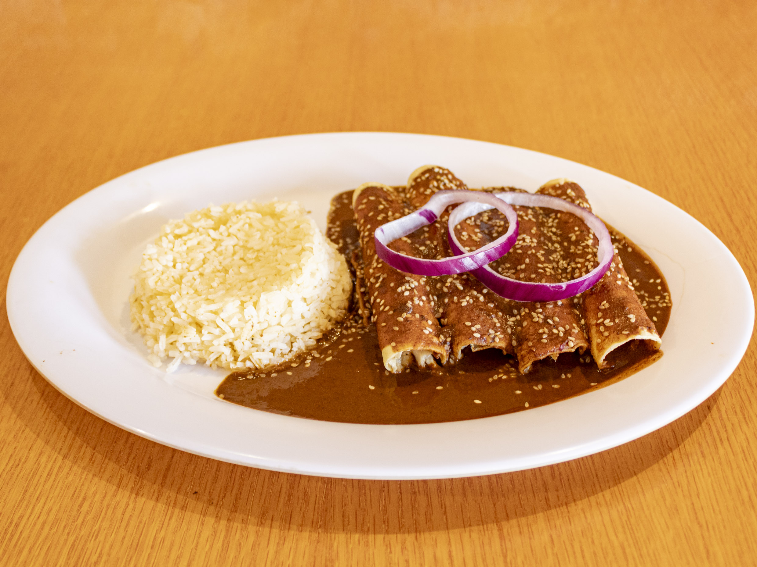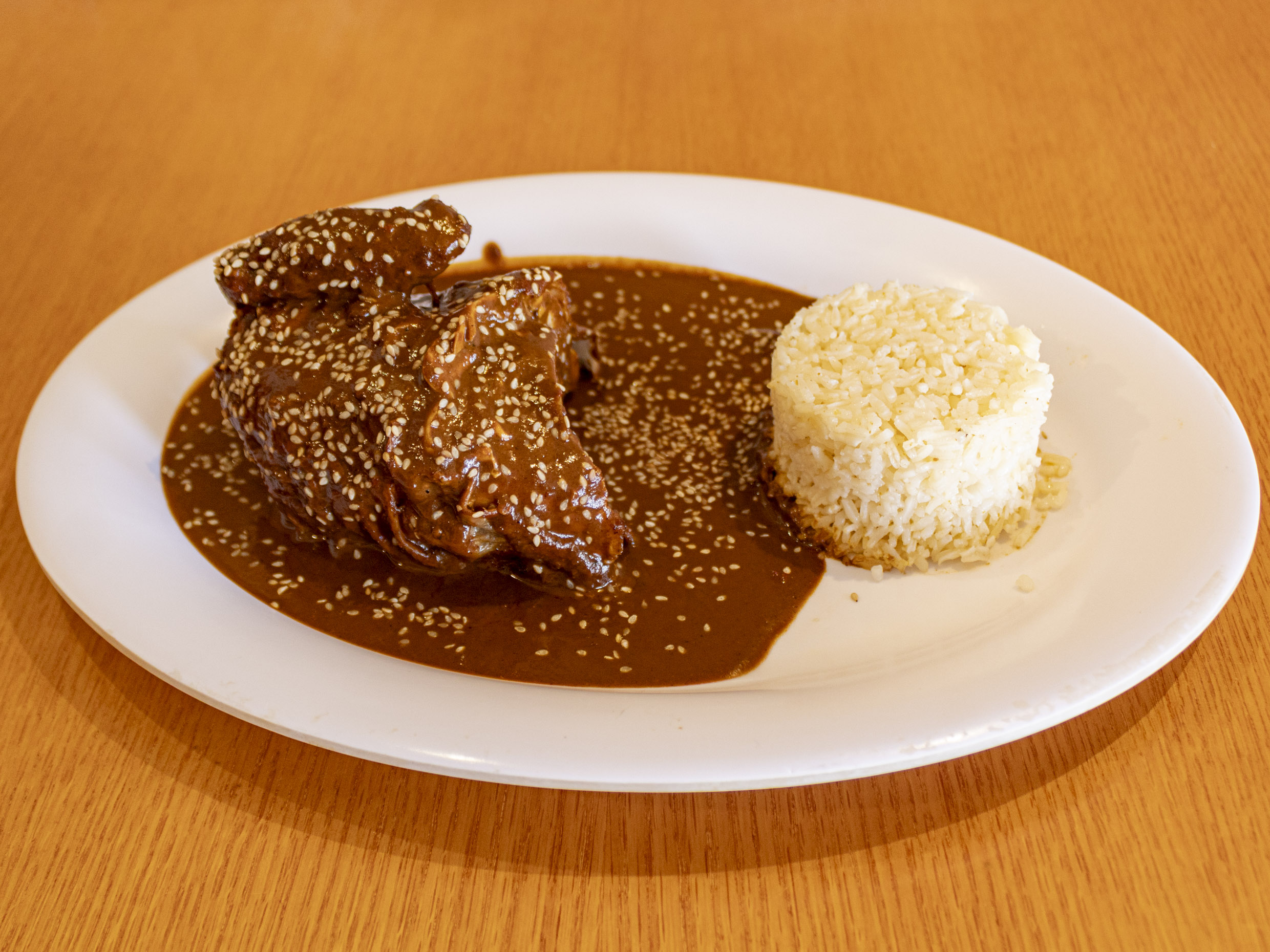1/4 de pollo bañado en delicioso mole acompañado de arroz