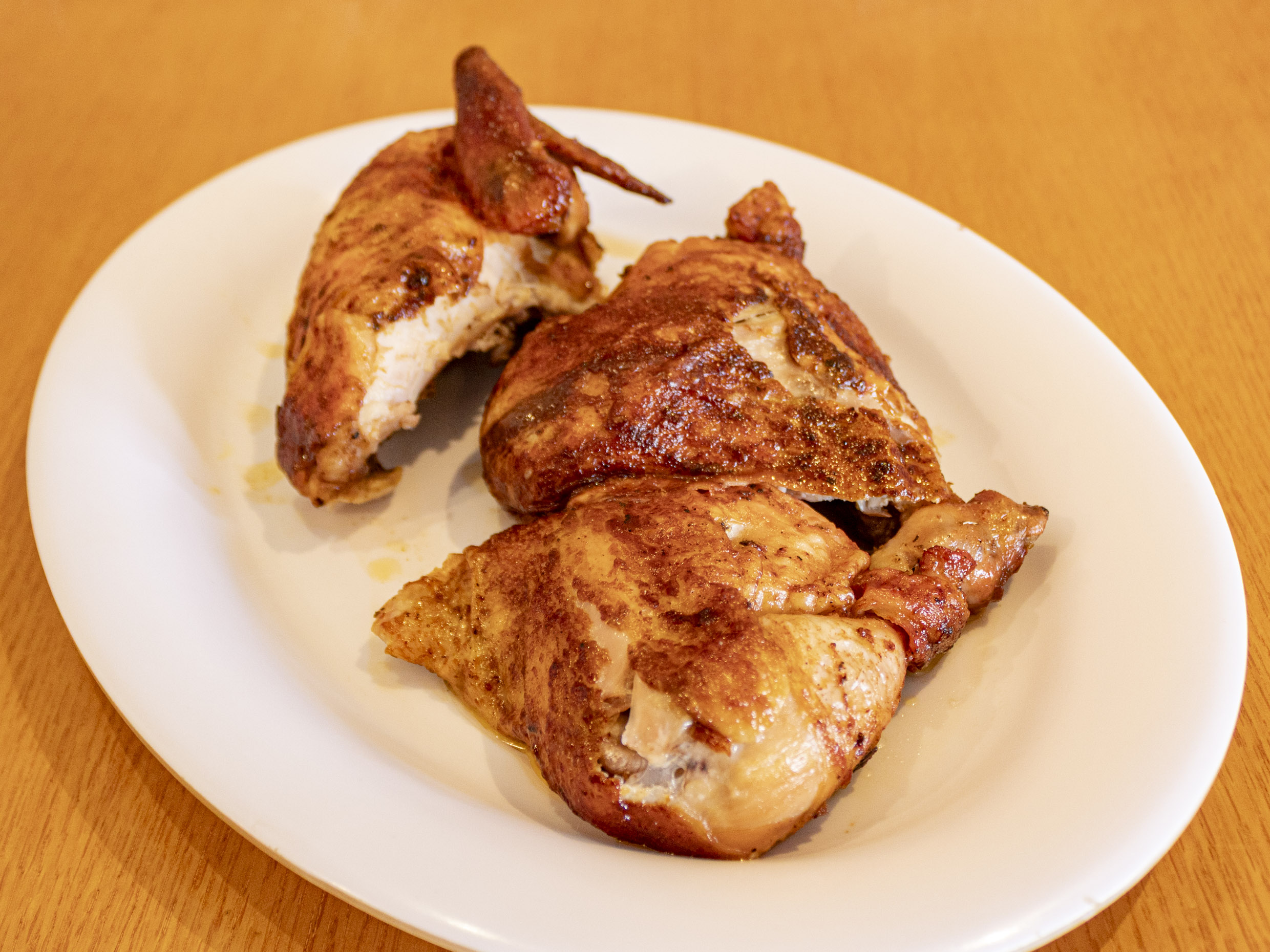 1/4 de pollo acompañado de papas y arroz, verdura ó ensalada con tortillas y salsa verde