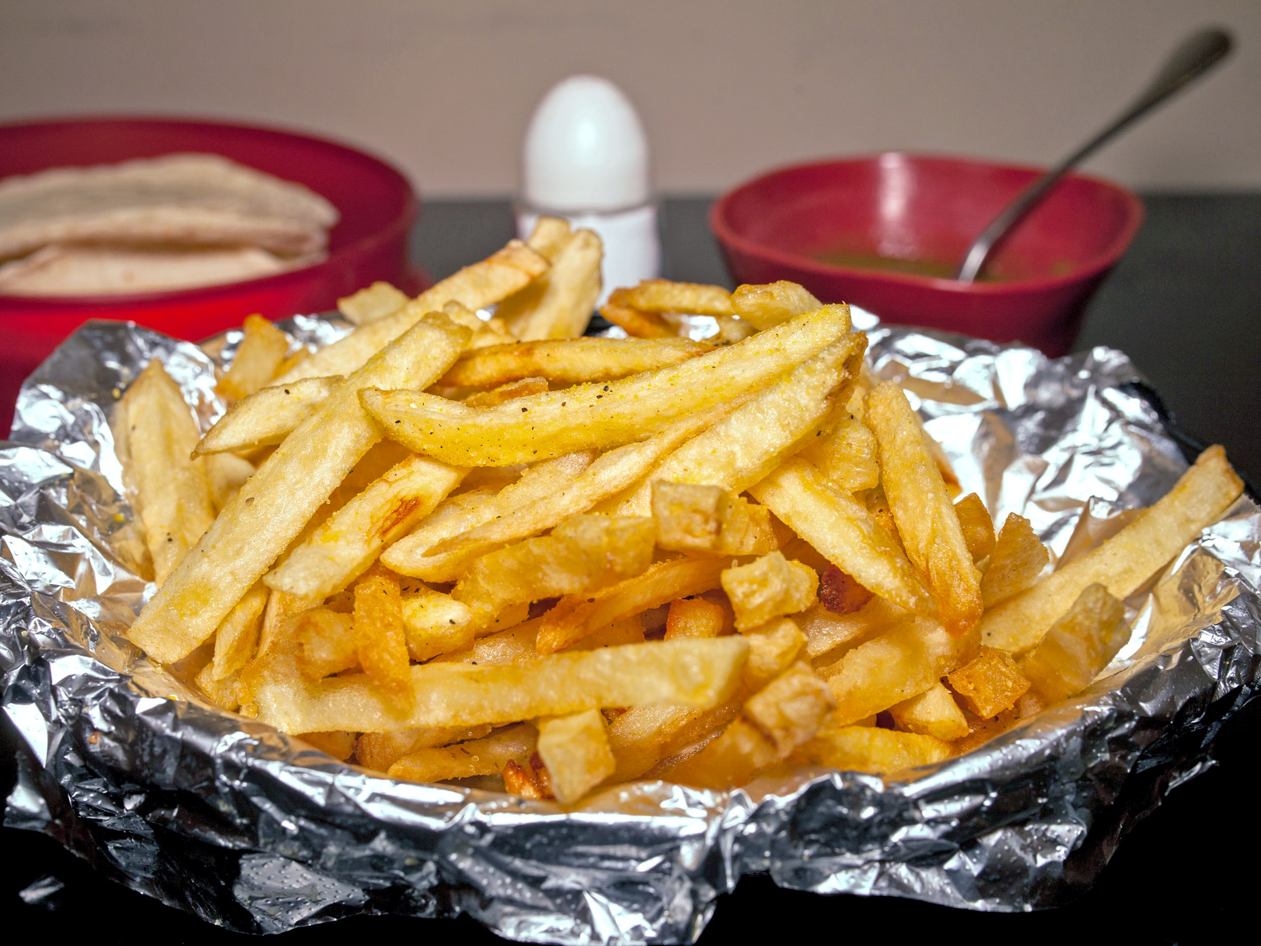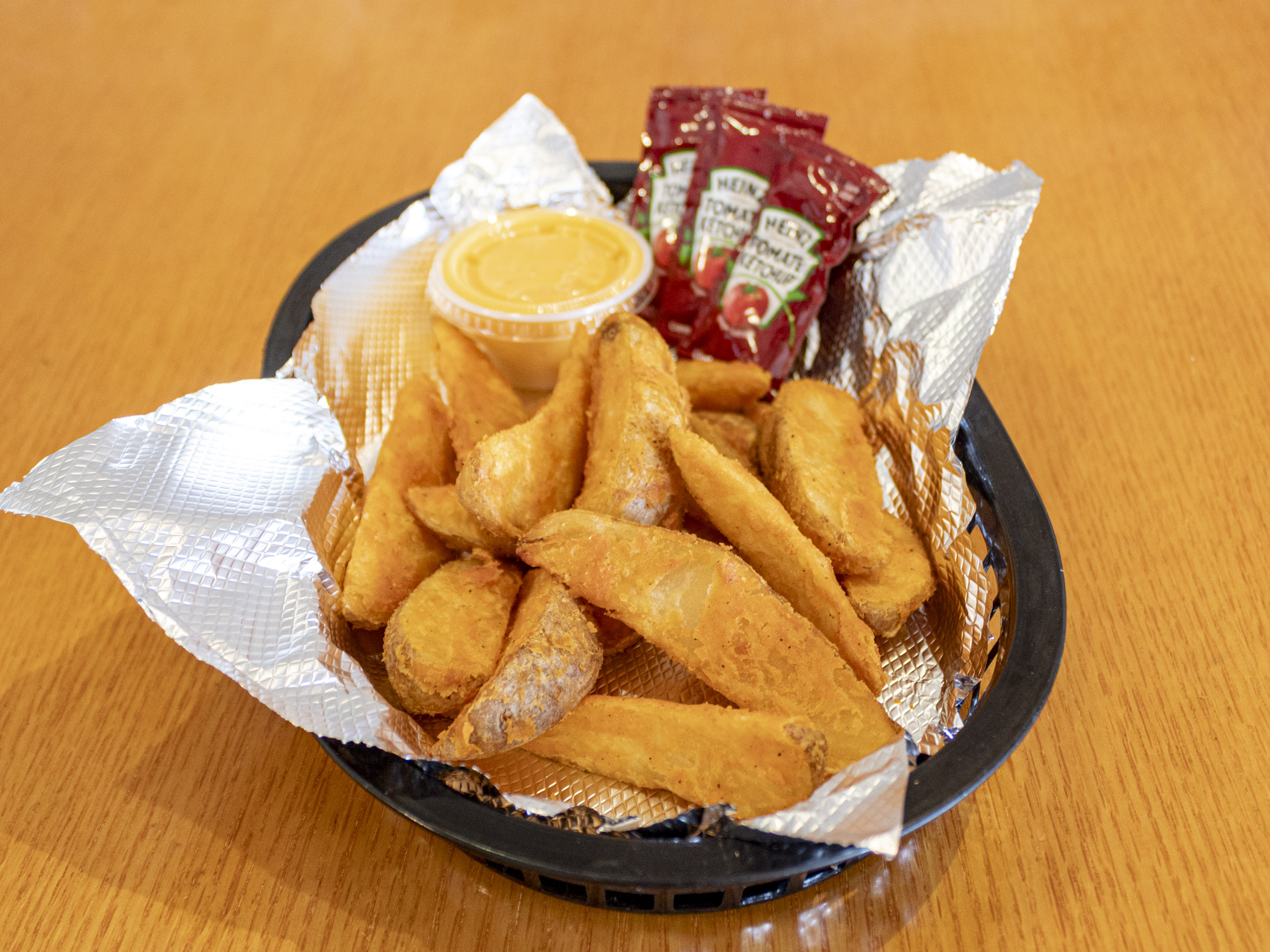 500 gramos de Boneless bañados en tu salsa favorita acompañados de papas a la francesa y papas gajo