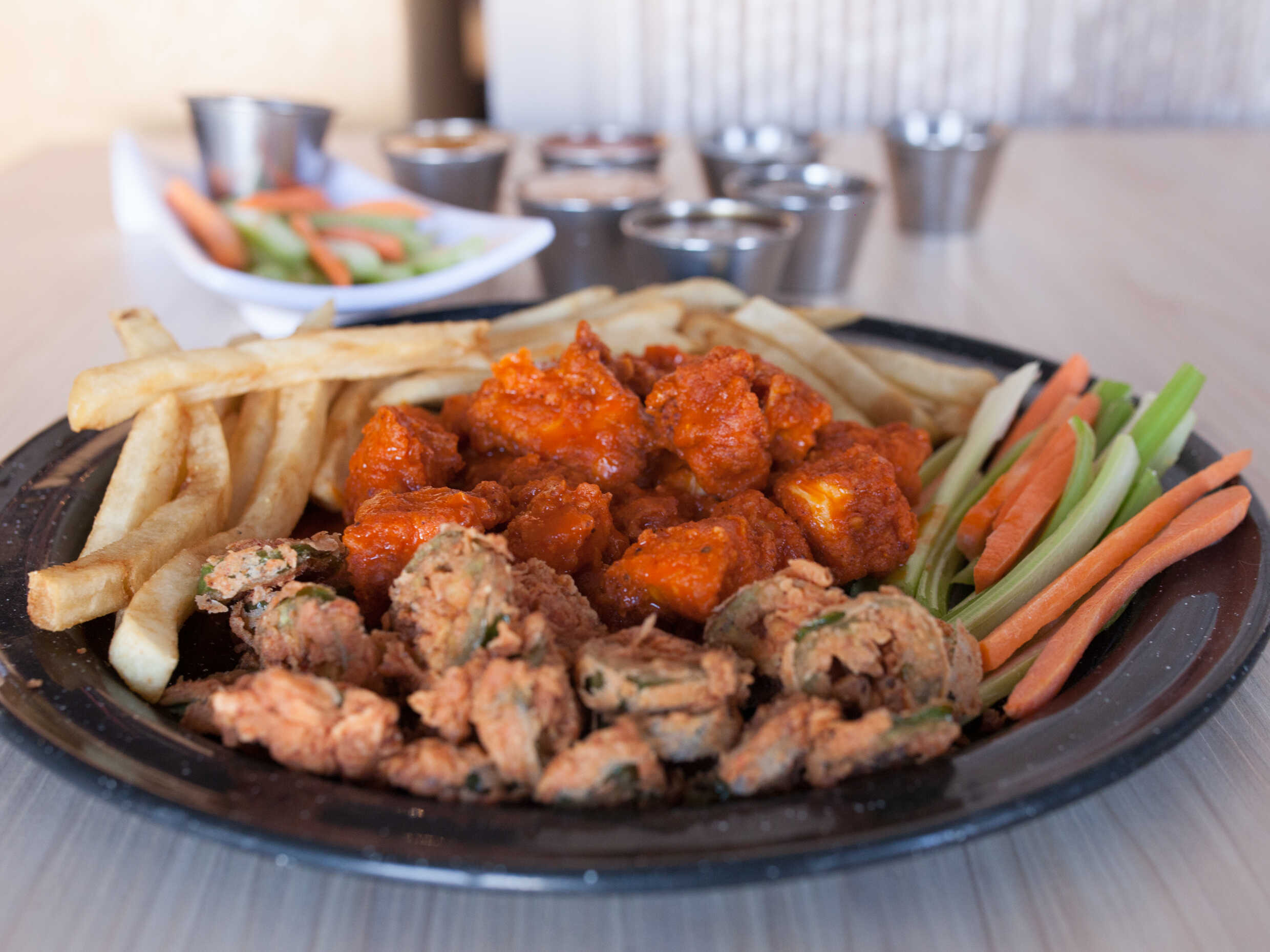 500gr de boneless, 10 alitas, 10 aros de cebolla, papas francesas, bites de jalapeño, apio, zanahoria y ranch