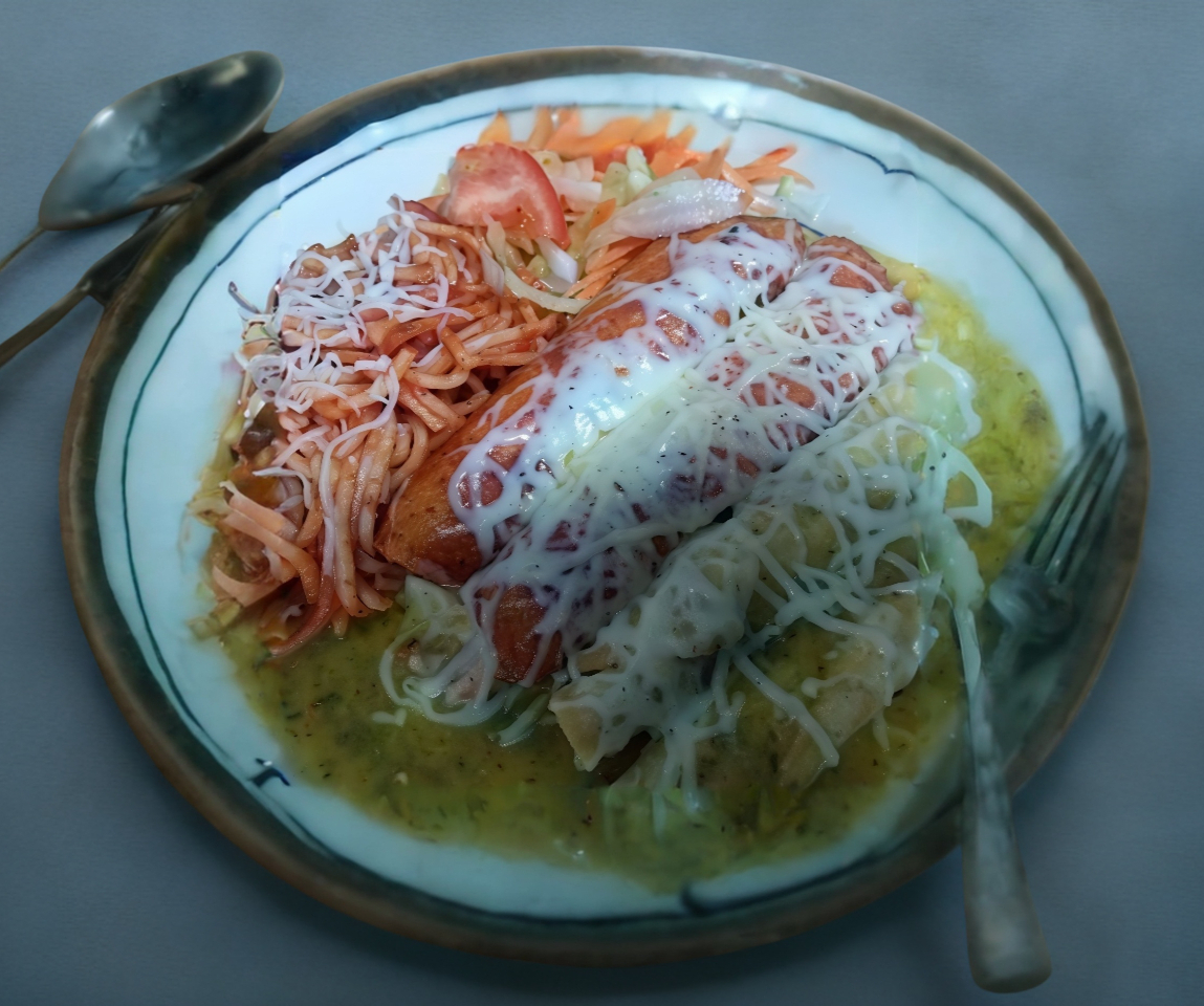 Elige tu ingrediente preferido a revolver, incluye frijoles, chialquiles y tortilla de maíz o harina.