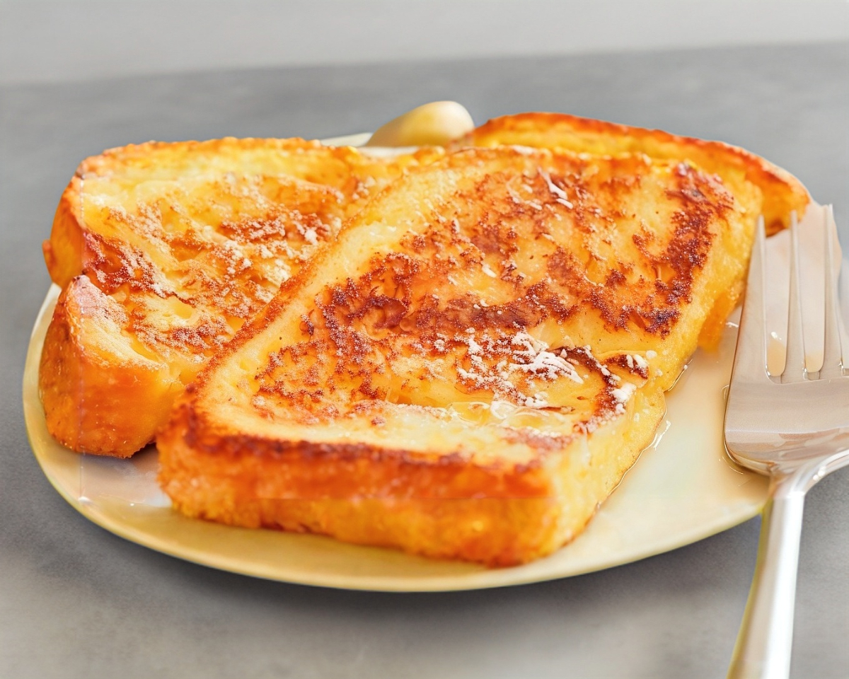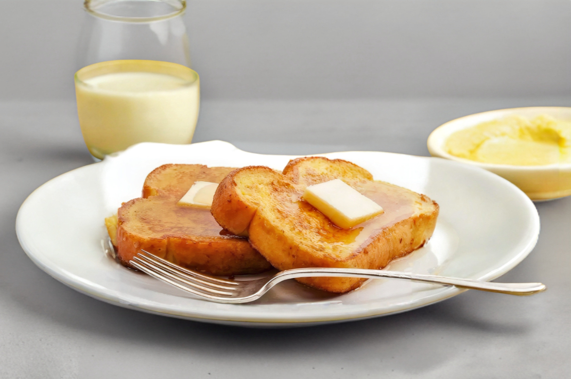 2 Huevos estrellados o revueltos con jamón o tocino, 2 hotcakes, miel y mantequilla