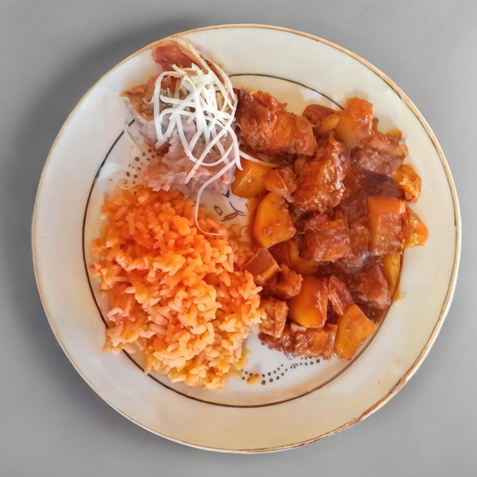 Guisado de tu elección, incluye 2 guarniciones, tortillas y salsa.