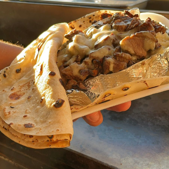 Queso y carne, la mejor convinación… Tortilla de harina y queso gratinado con todo el sabor del norte.