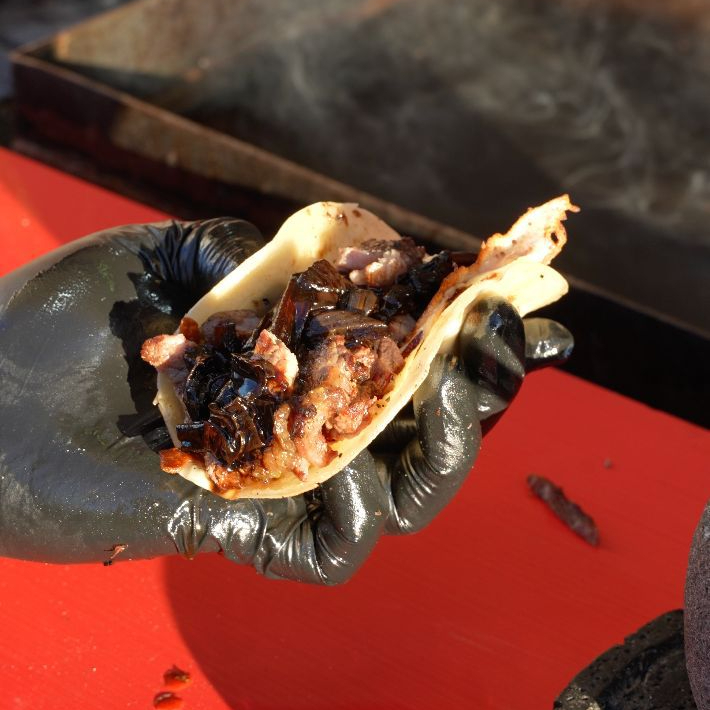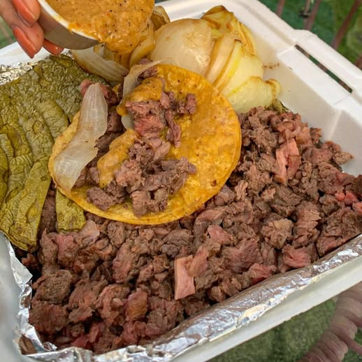 Delicioso taco de arrachera en tortilla de harina o maíz.