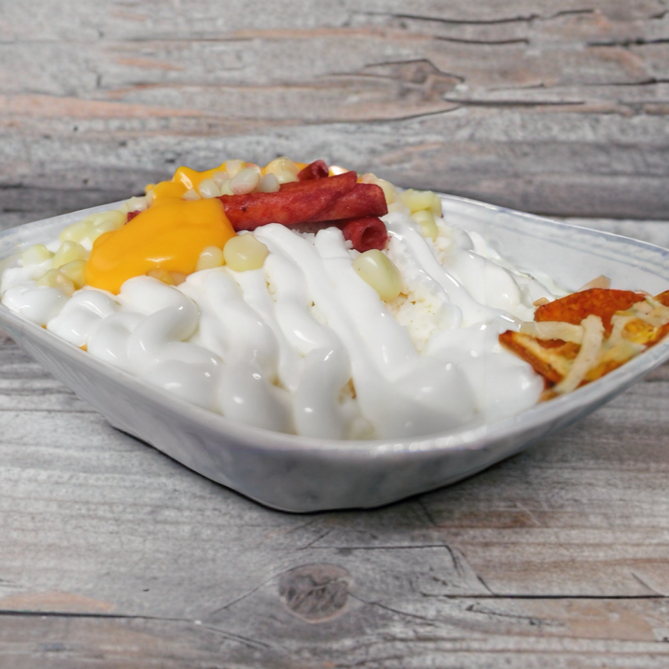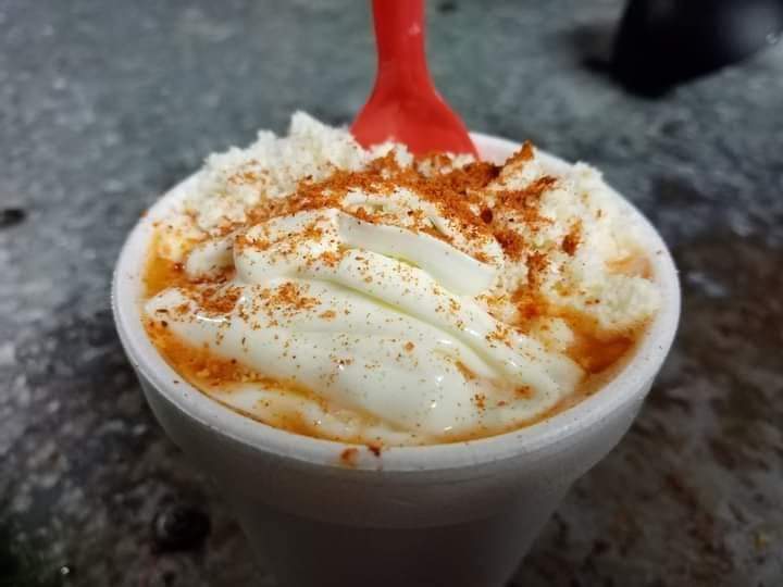 queso amarillo, elote, queso blanco, crema y chile al gusto