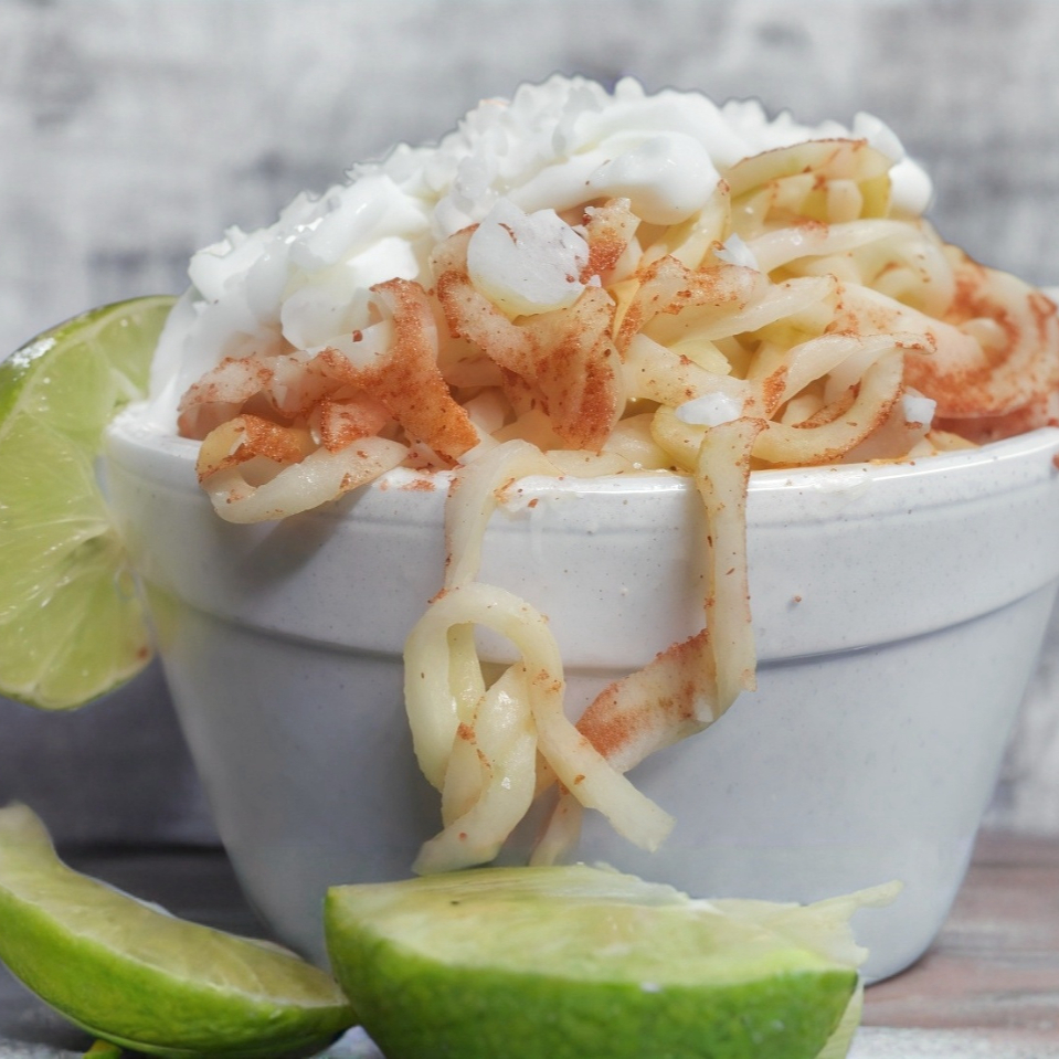 Mantequilla, queso blanco, crema, limón, chile, salsa Valentina y Maggi.