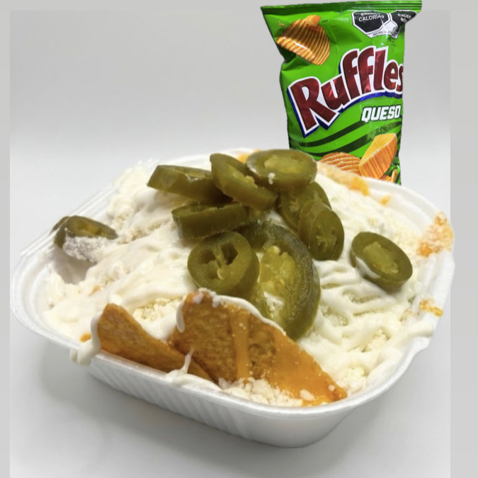 Doritos Nachos con elote, crema, queso y queso para nachos