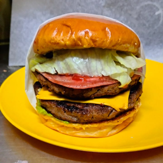 Doble carne de hamburguesa,jamon,queso,tocino,aguacate,lechuga,tomate,cebolla,mayonesa,mostaza y catsup