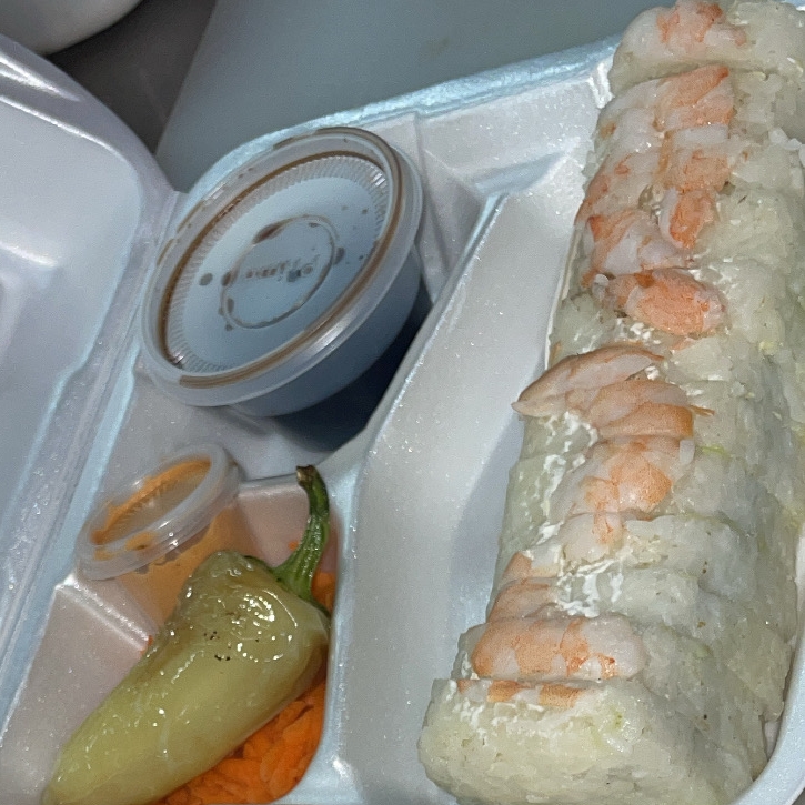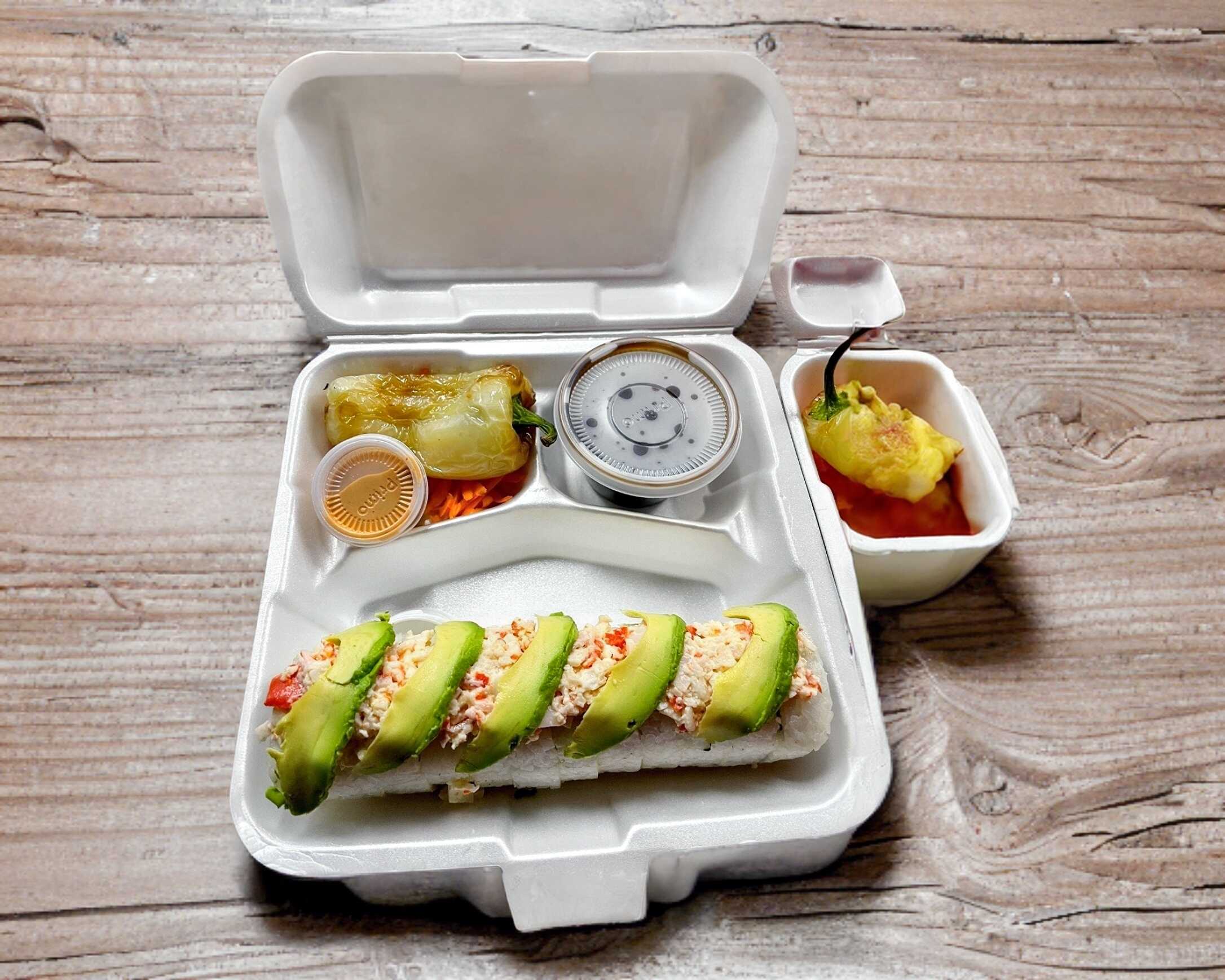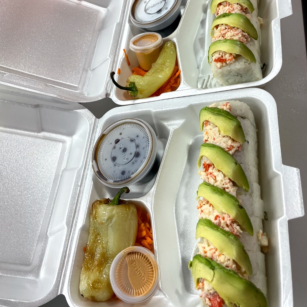 CAMARON,CANGREJO,CHILE CARIBE,PHILADELPHIA Y AGUACATE POR DENTRO (TOPPING DE TAMPICO Y AGUACATE POR FUERA)