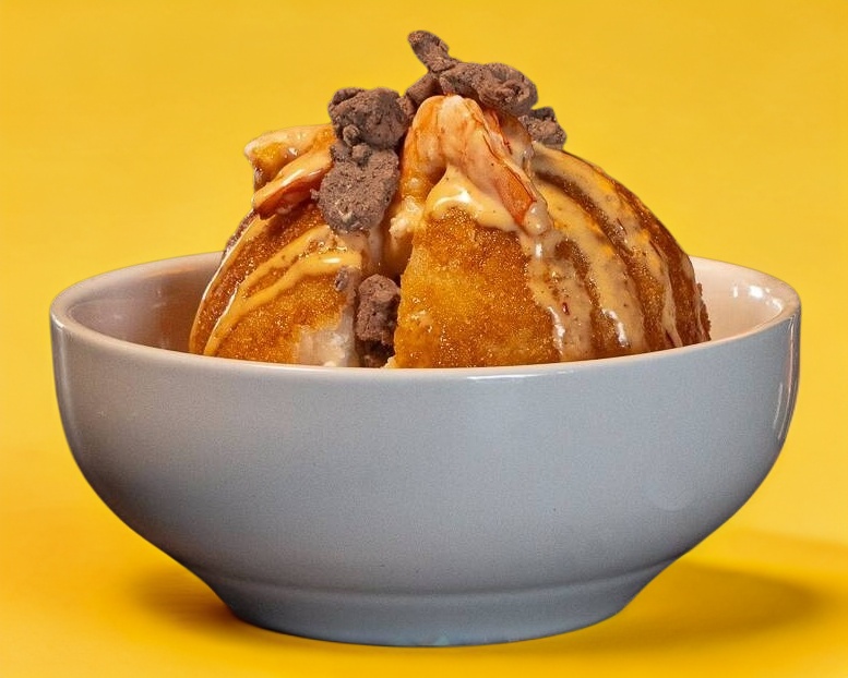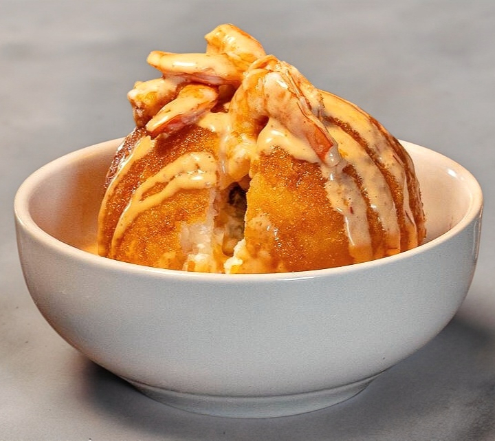 1 Bola de arroz rellena de aguacate, camarón, filadelfia, pepino y surimi, bañada con salsa anguila y chipotle, zanahoria salteada + 1 Refresco 355 ml sabor a elegir.