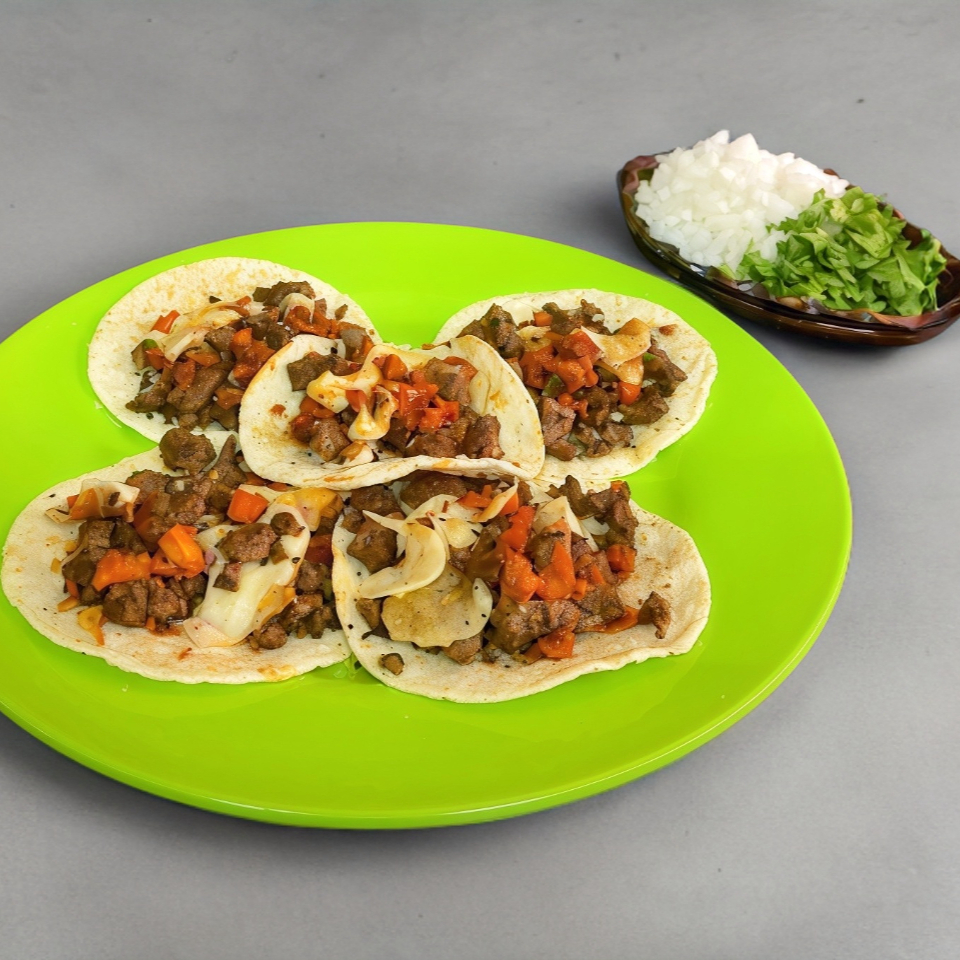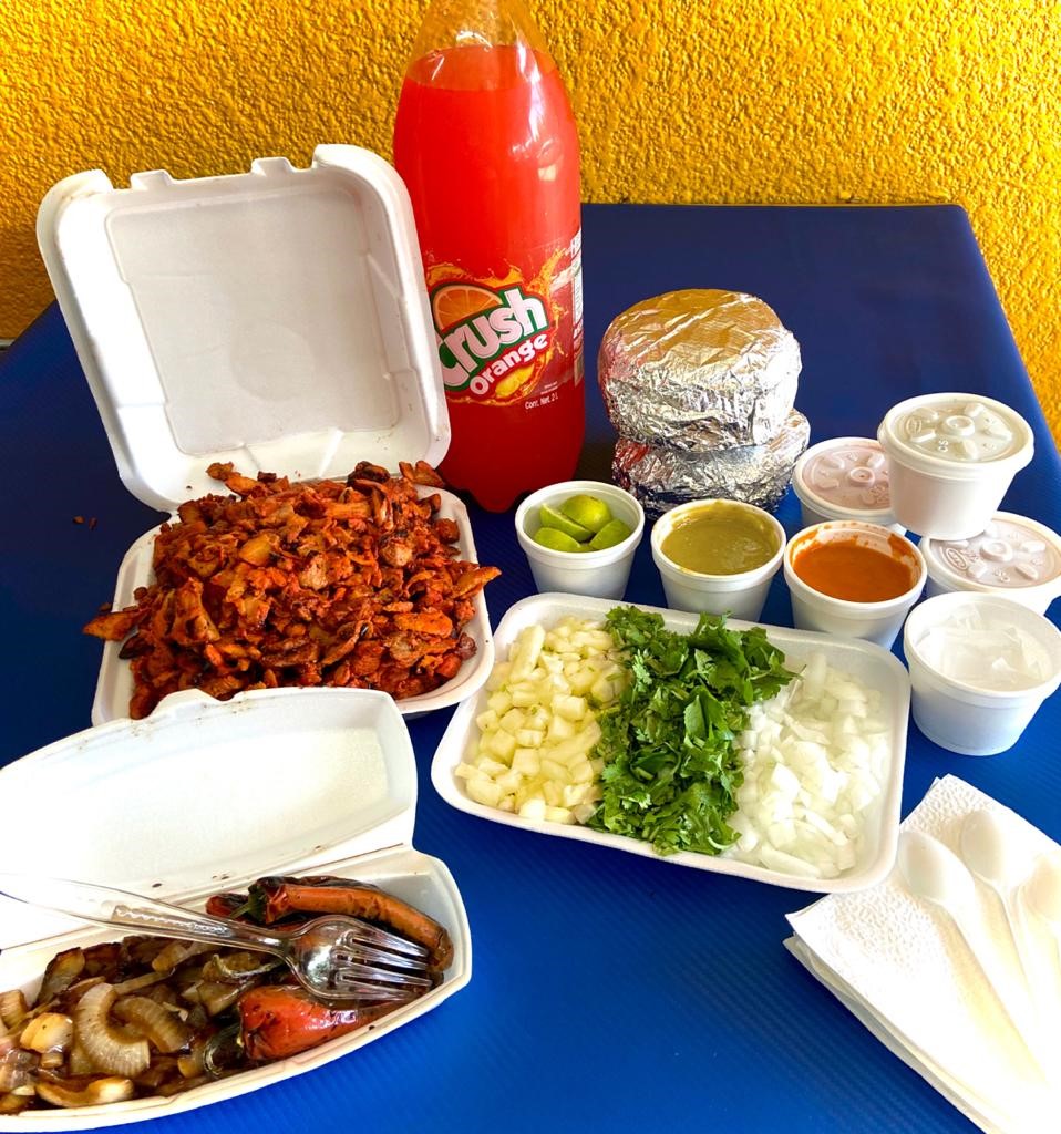 800grs. de bistec acompañado de verdura, salsas, limones, tortillas y un refresco de dos litros.
