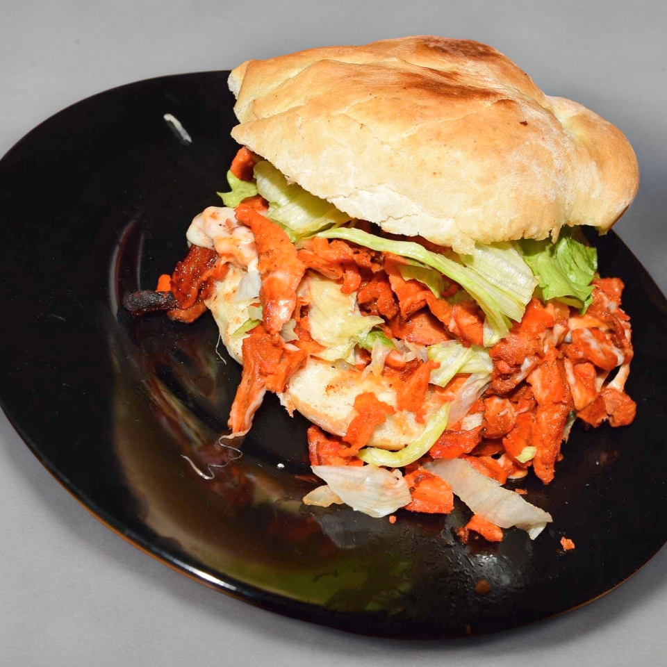 Carne al pastor, jamón, lechuga, tomate, mayonesa y asadero.