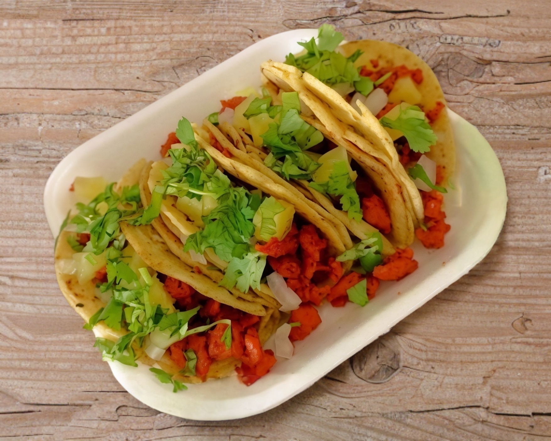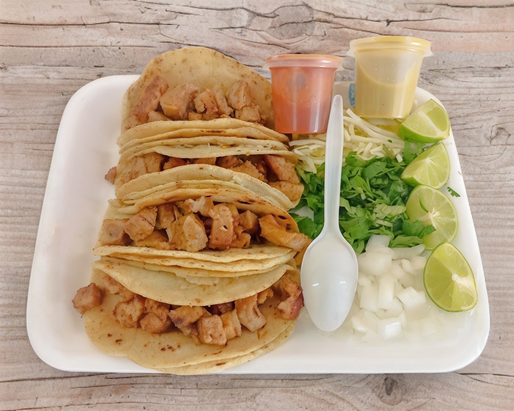 4 Tacos de Pastor en tortilla de maiz copia, elige las verduras y salsas que desees
