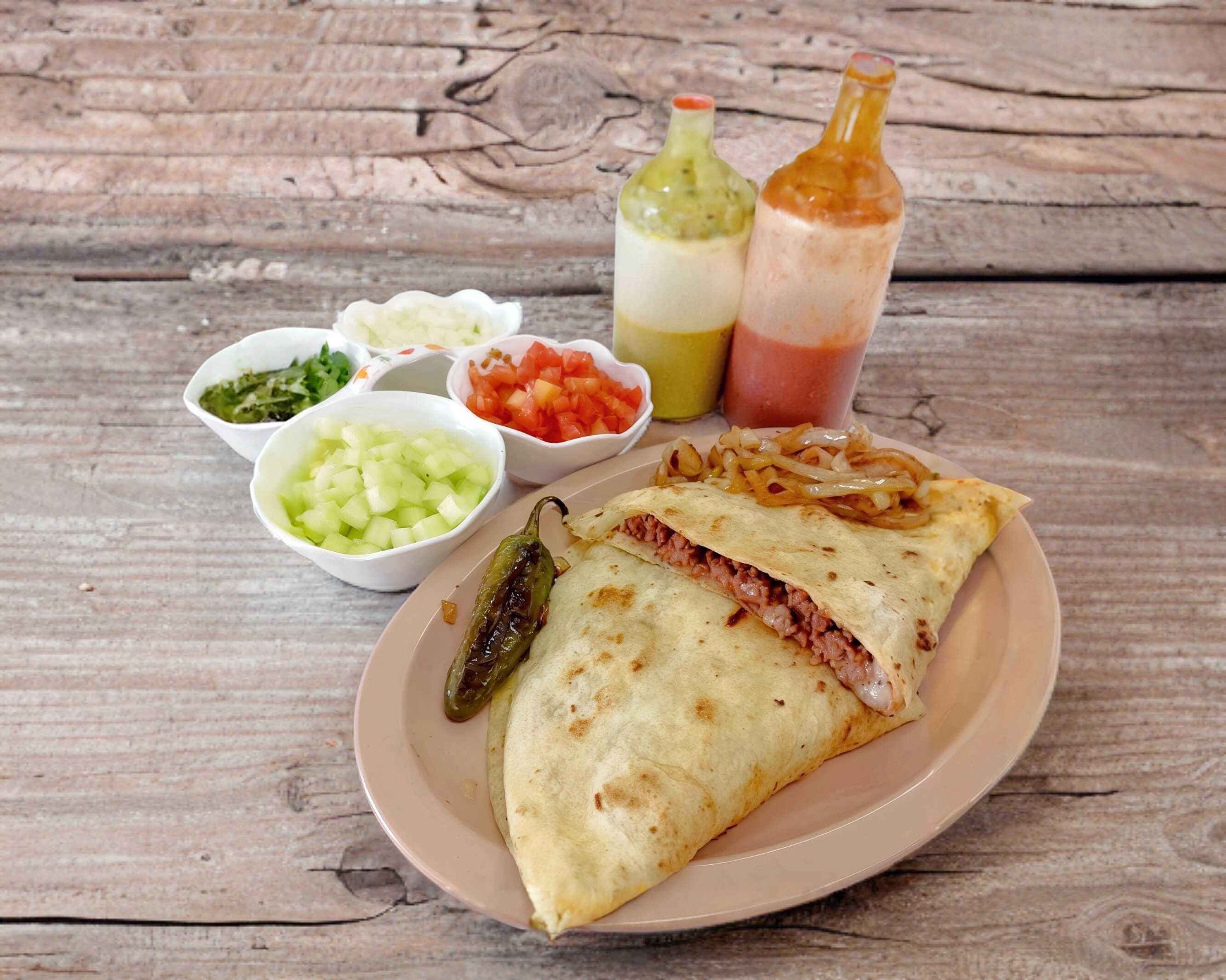 Montado de Bistec con Asadero, elige las verduras y salsas que desees