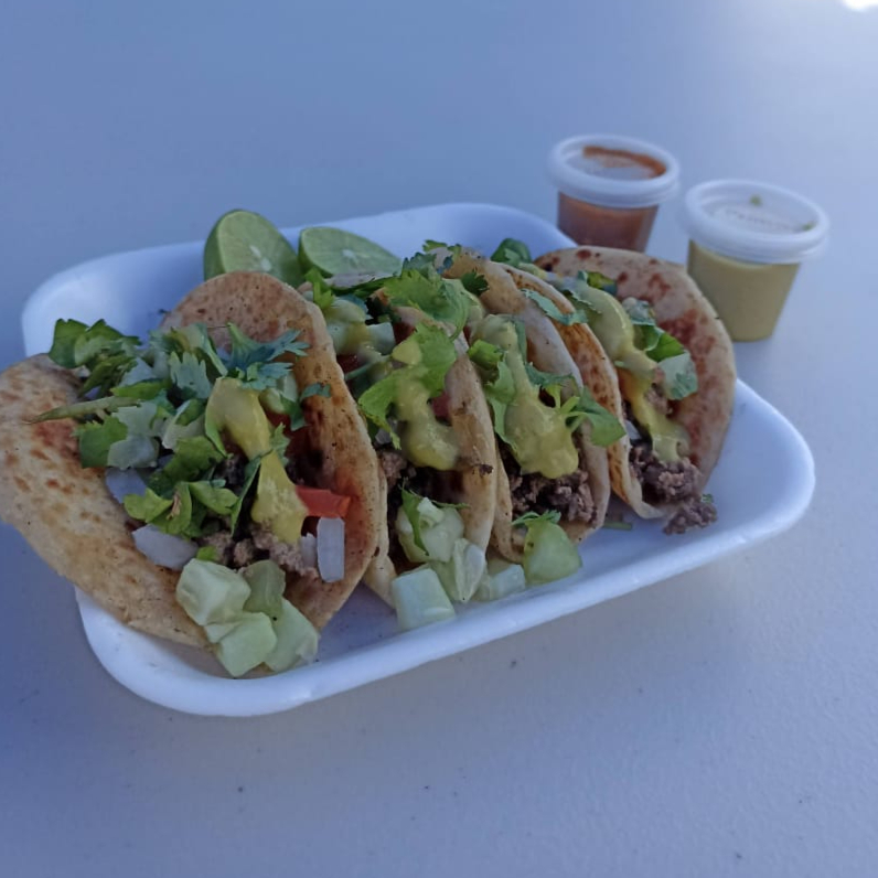 4 Tacos en tortilla de Harina, verdura por separado a su eleccion