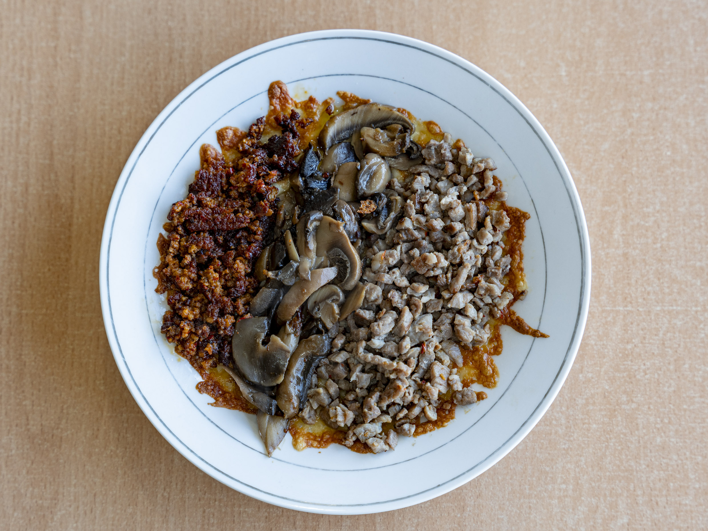 Bistec y chorizo, cubiertos con queso fundido. Acompañado de tortillas chicas, salsas y limones.