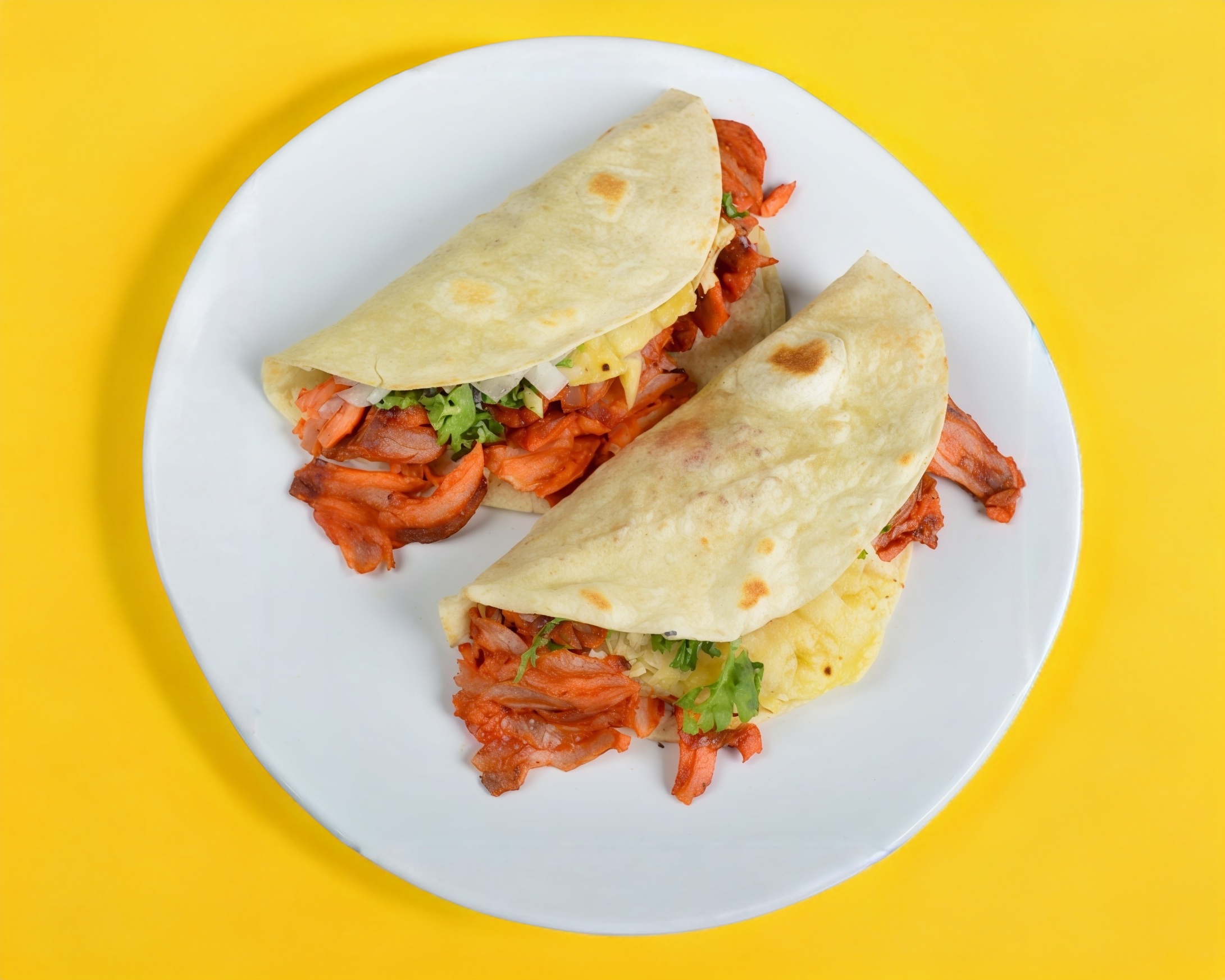 TACOS DE CARNE AL PASTOR EN TORTILLA DE HARINA.