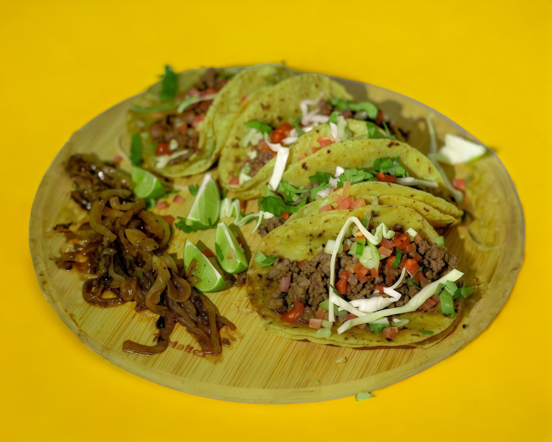 (Orden con 4 tacos de Carne de cerdo al Pastor en doble tortilla de maíz nixtamalizado, acompañados de cebollita guisada).