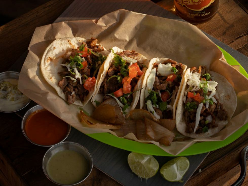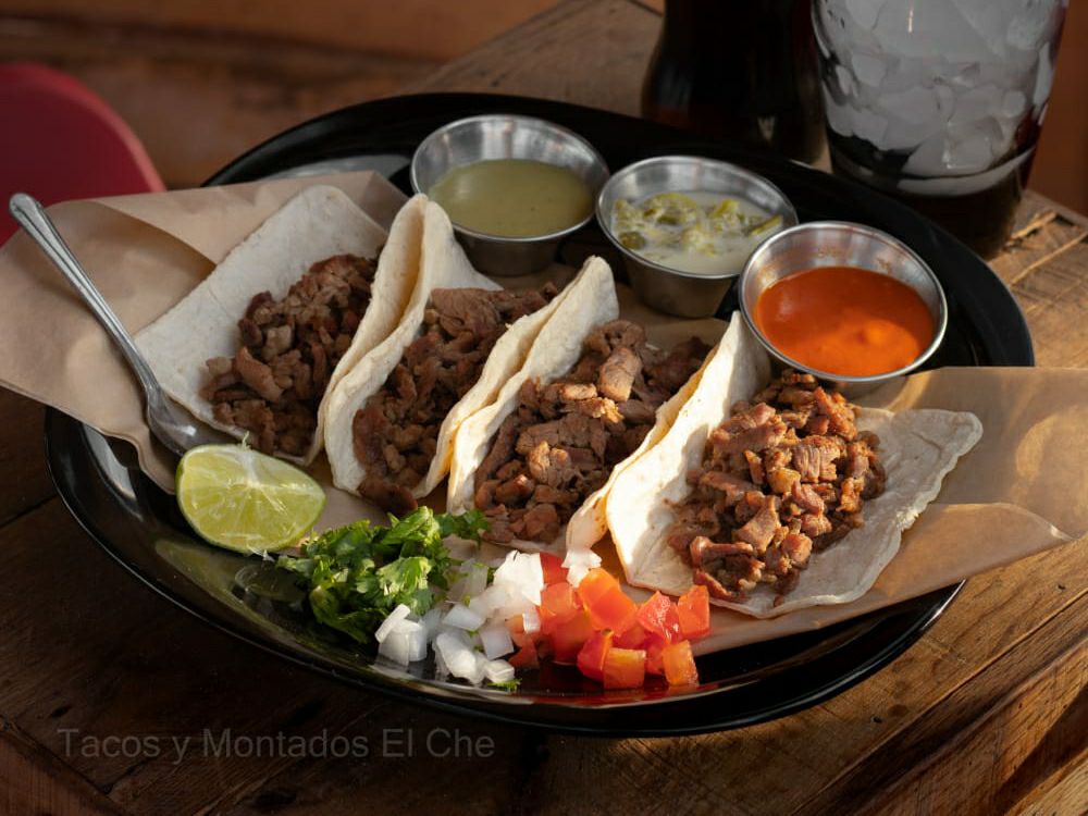 Tortilla maiz cuadrada con carne asada. Orden con 4