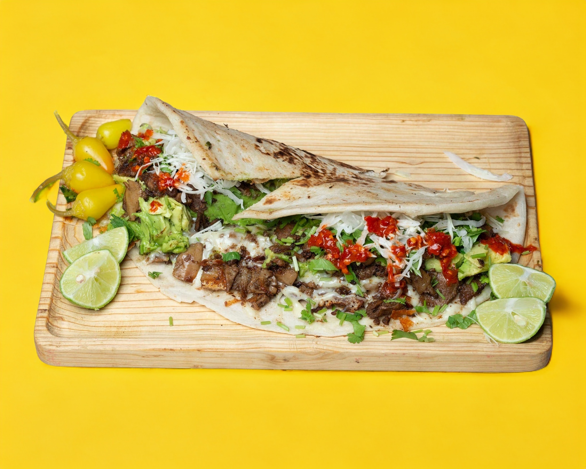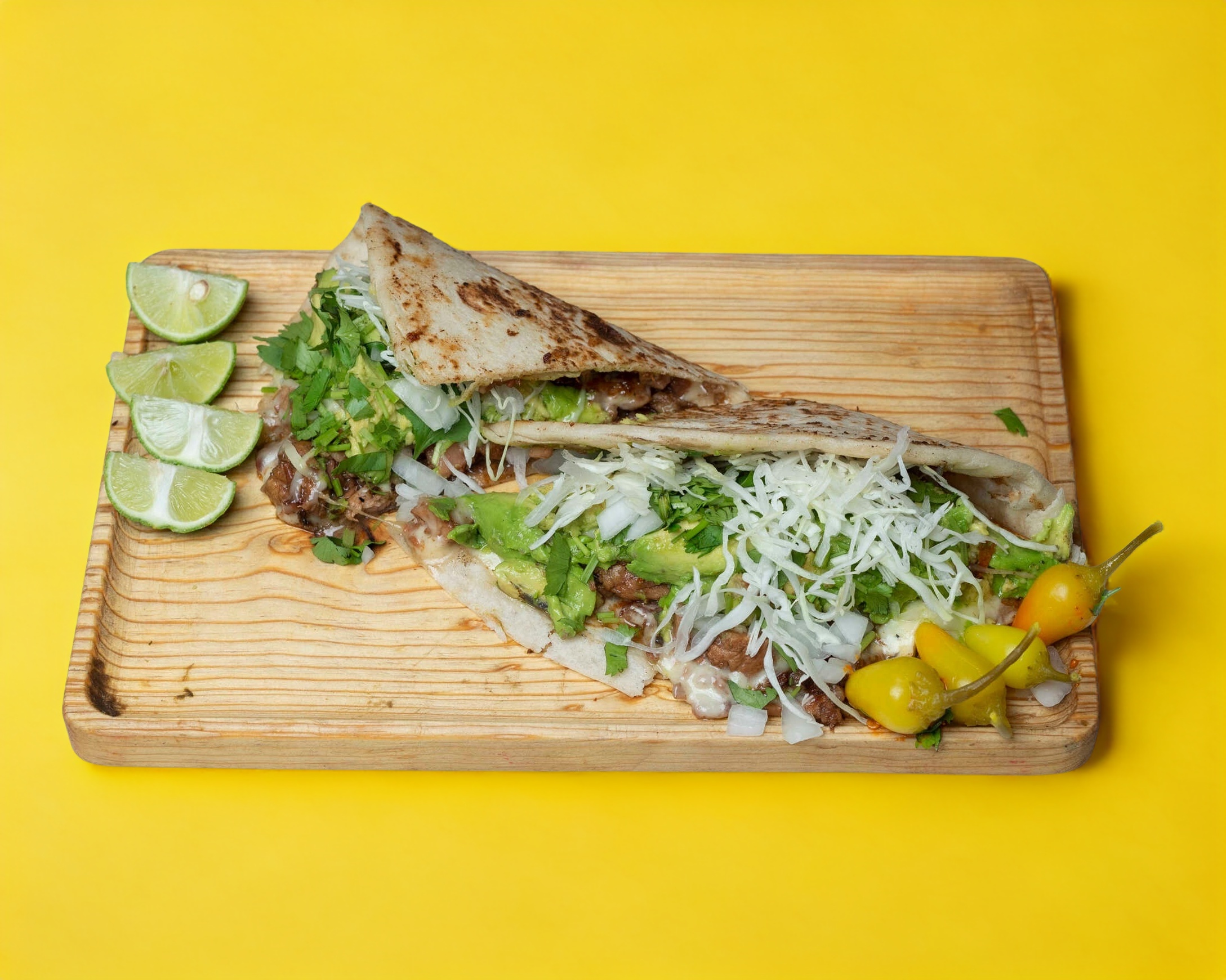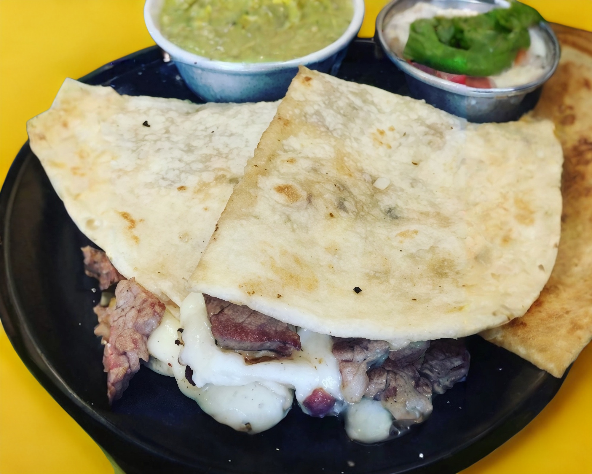 Asada y tripa, lechuga, mayonesa, aguacate.