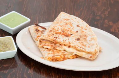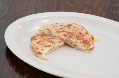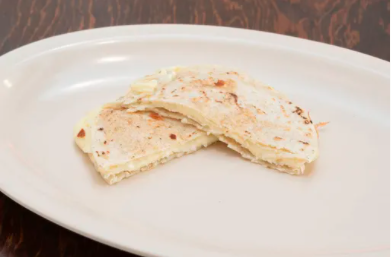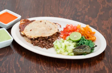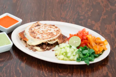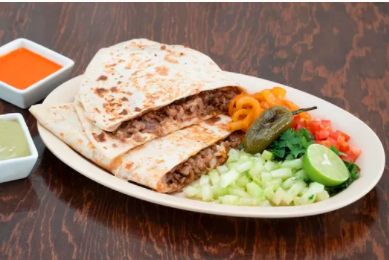 Tortilla de harina acompañada de frijoles con chorizo, asadero y carne de res.