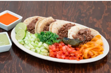 Carne de res en tortilla recién hecha 2 de maíz y 2 de harina.