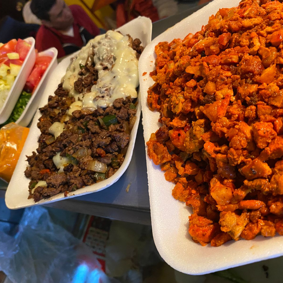 1/2 kg de alpastor y 1/2 kg de alambre con verdura,salsas y tortillas