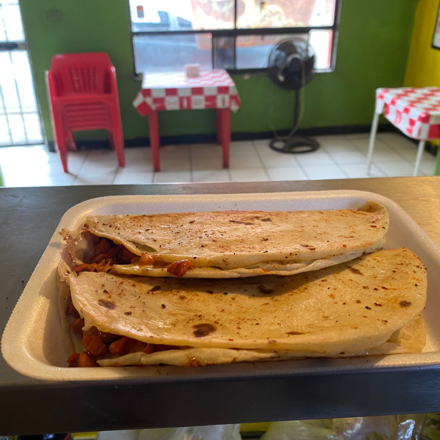 carne de pastor con queso y aguacate (verdura y salsa aparte)