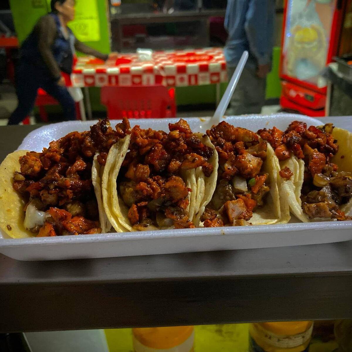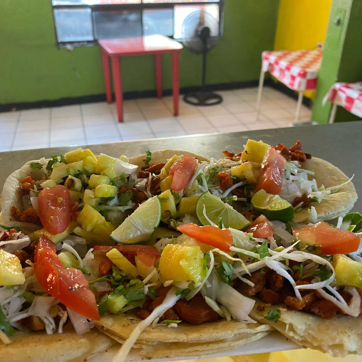 4 tacos alpastor de maiz tortilla doble, salsa y verdura aparte