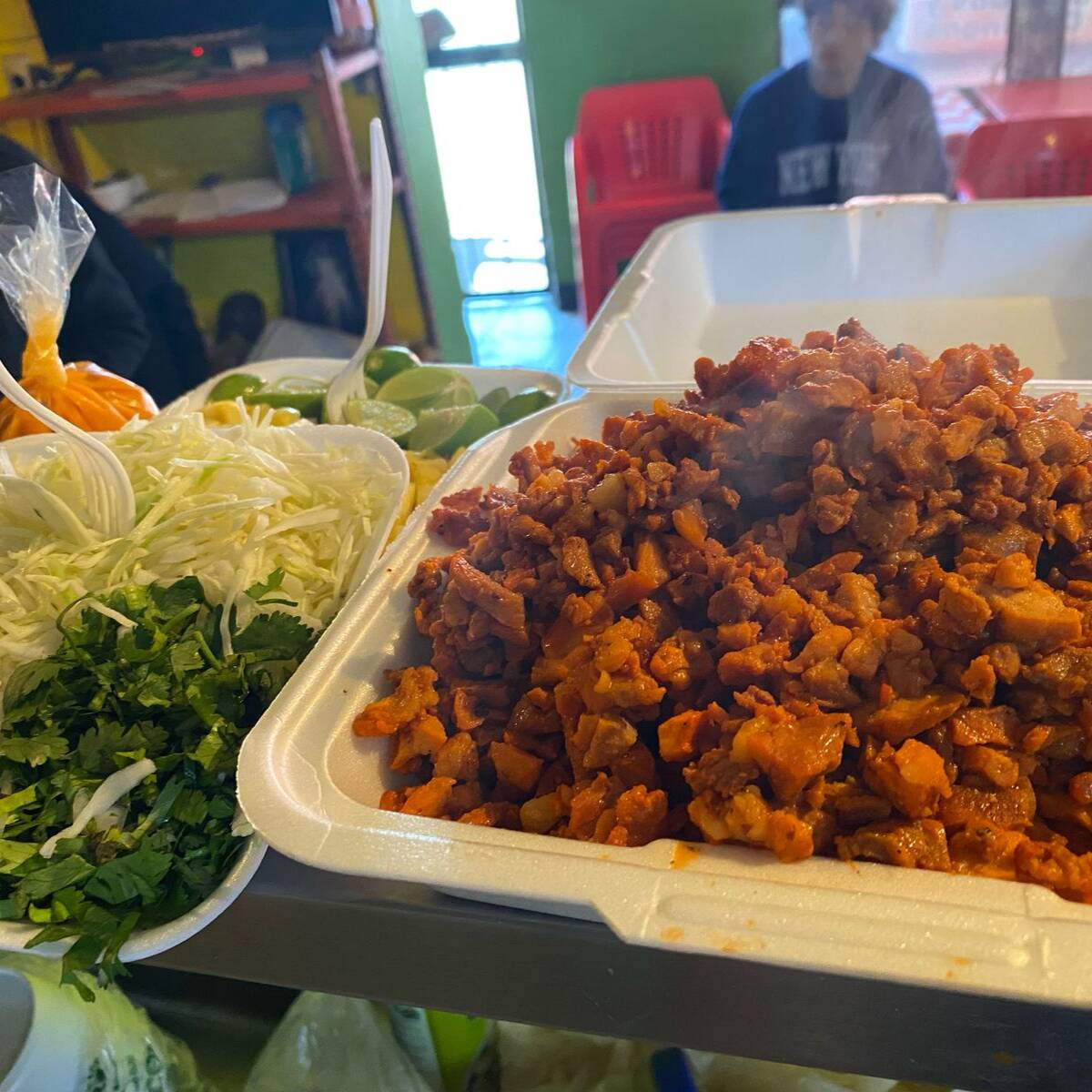 1 kilo de carne alpastor que inluye verdura, salsas y tortillas
