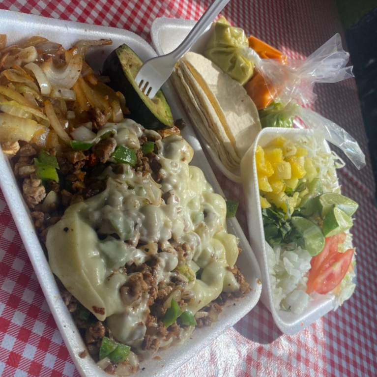 carne de res con queso y aguacate (verdura y salsa aparte)