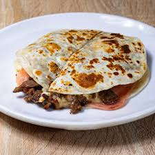 Tortilla de harina grande con bistec, queso, lechuga, aguacate y mayonesa.