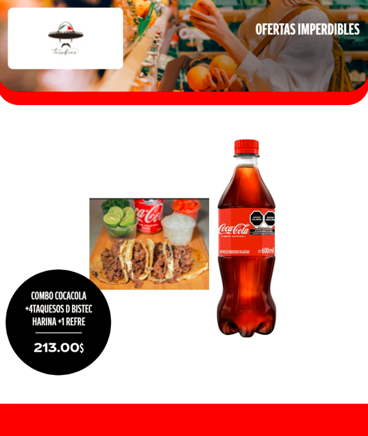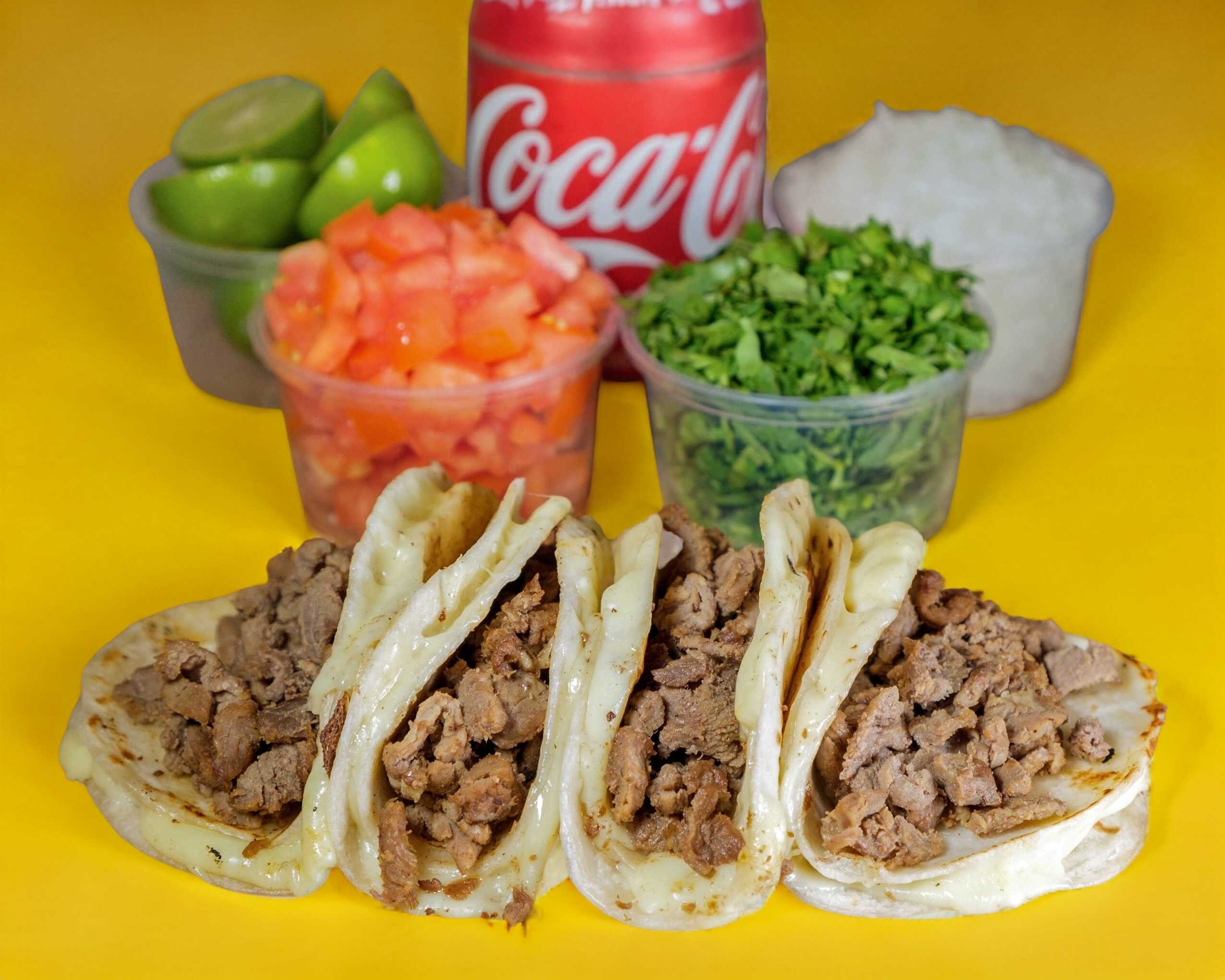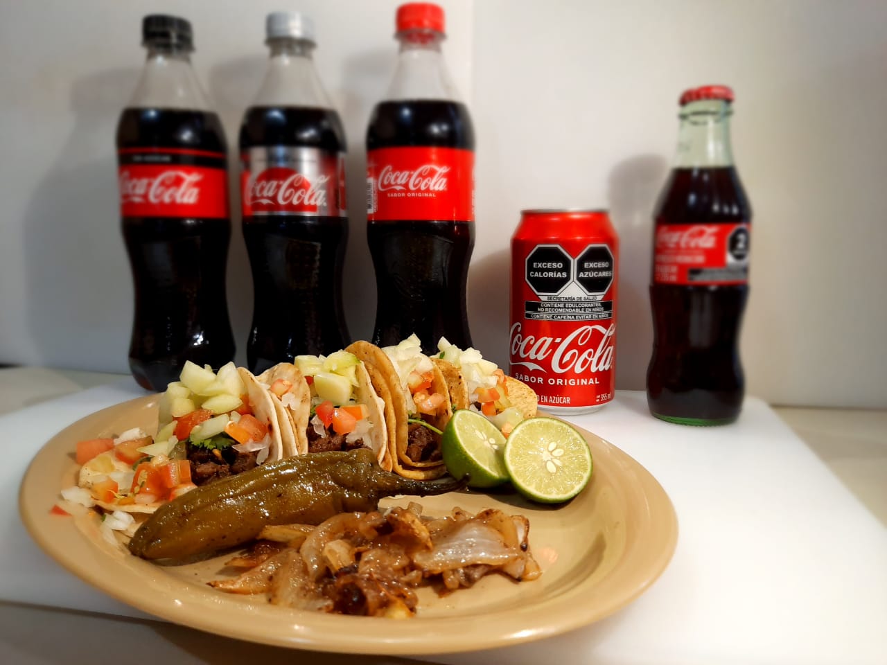 Taquesos de Bistec Harina (4 Pzas).*1 + Coca cola original (355 ml) (lata).*1