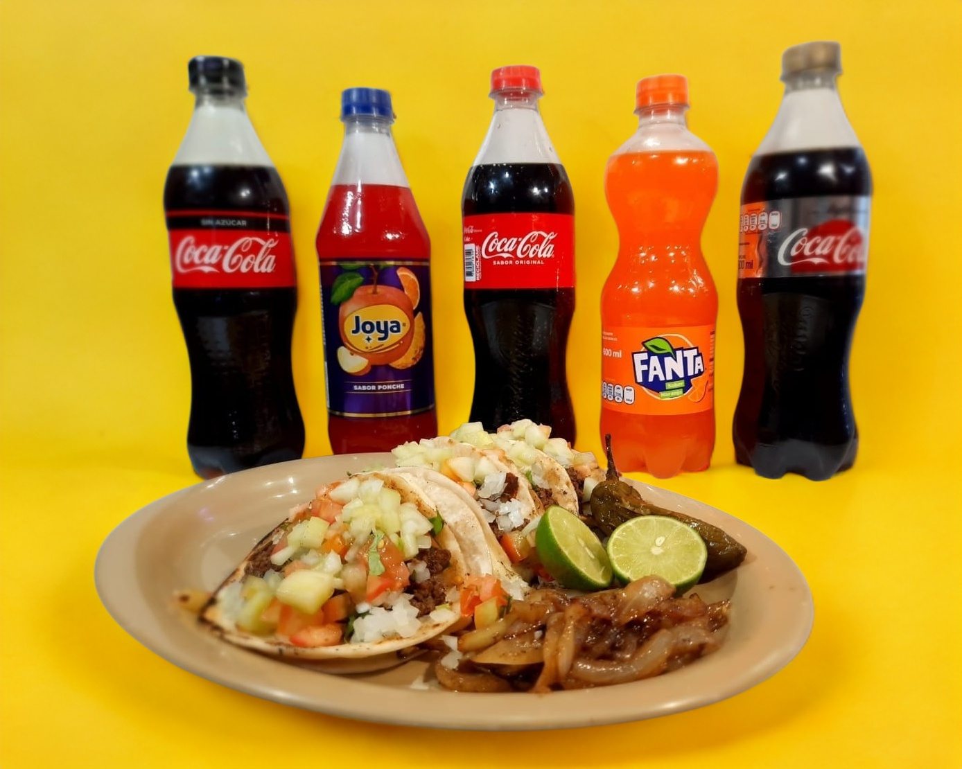 Refrescos*1 + Tacos de Bistec Mixta (4 Pzas).*1