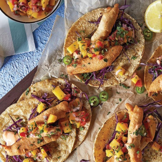 Pescado capeado estilo ensenada, col, cebolla morada, pico de gallo y aderezo de chipotle