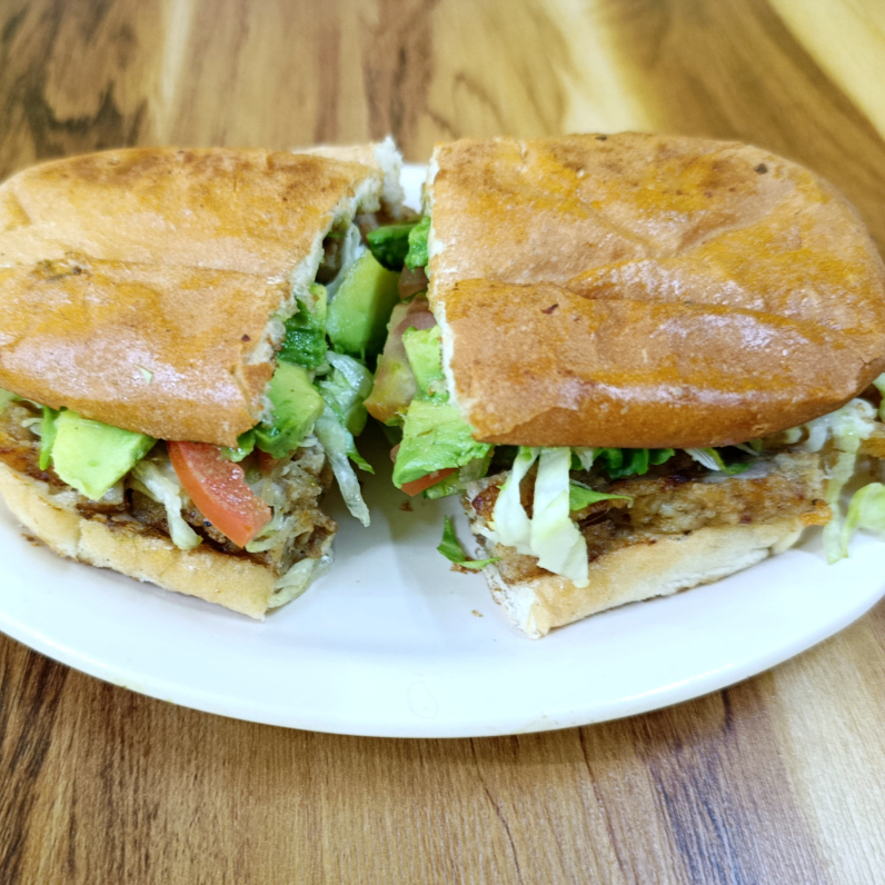 Milanesa, queso, lechuga, mayonesa, aguacate, jitomate