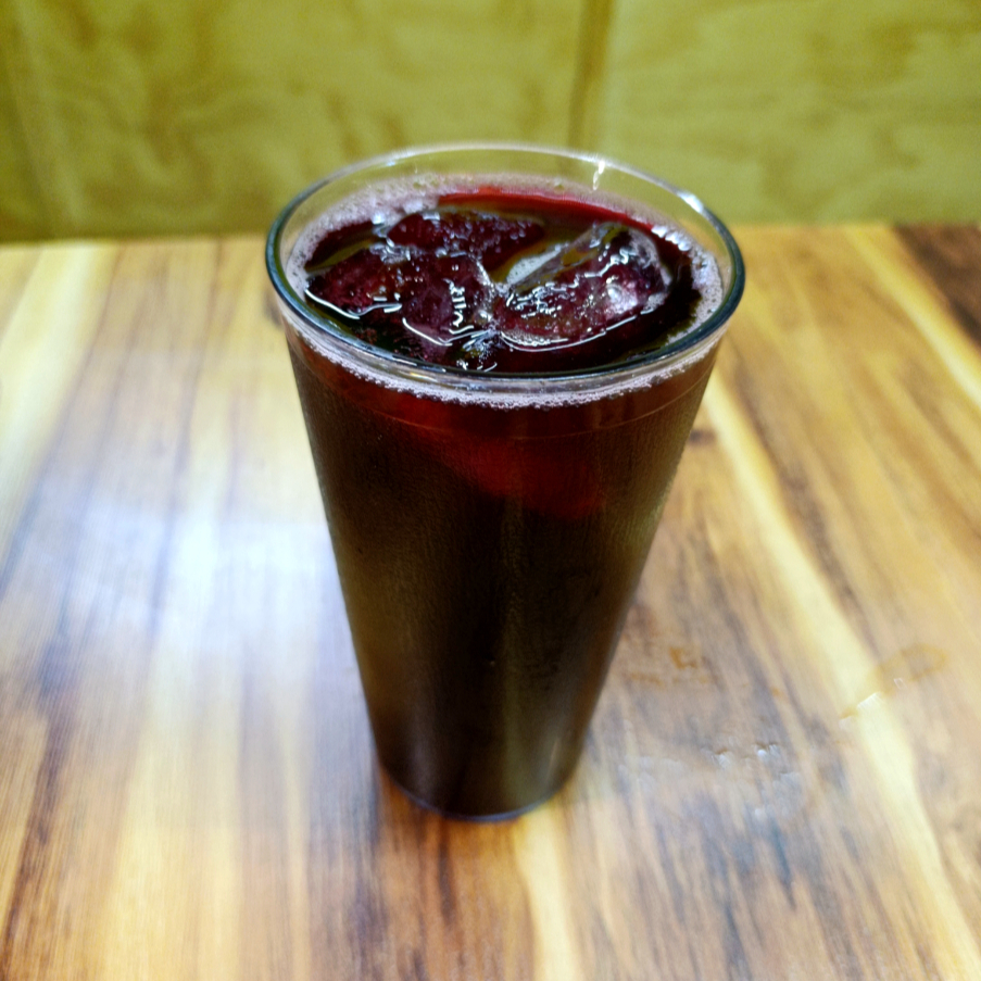 Sope de maíz con frijol refrito, carne de bistec, queso, lechuga, crema,