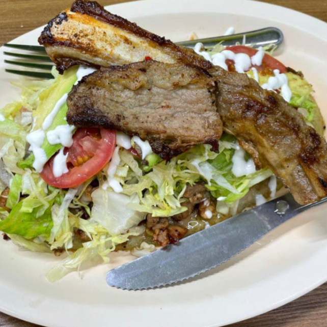 Costilla, queso, lechuga, mayonesa, aguacate, jitomate