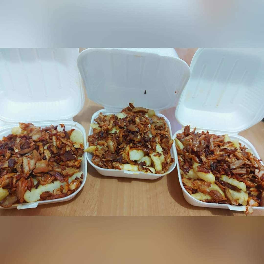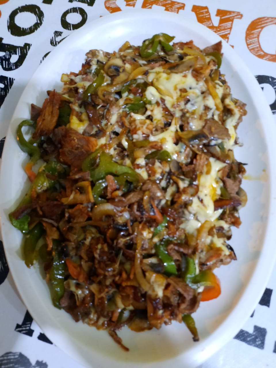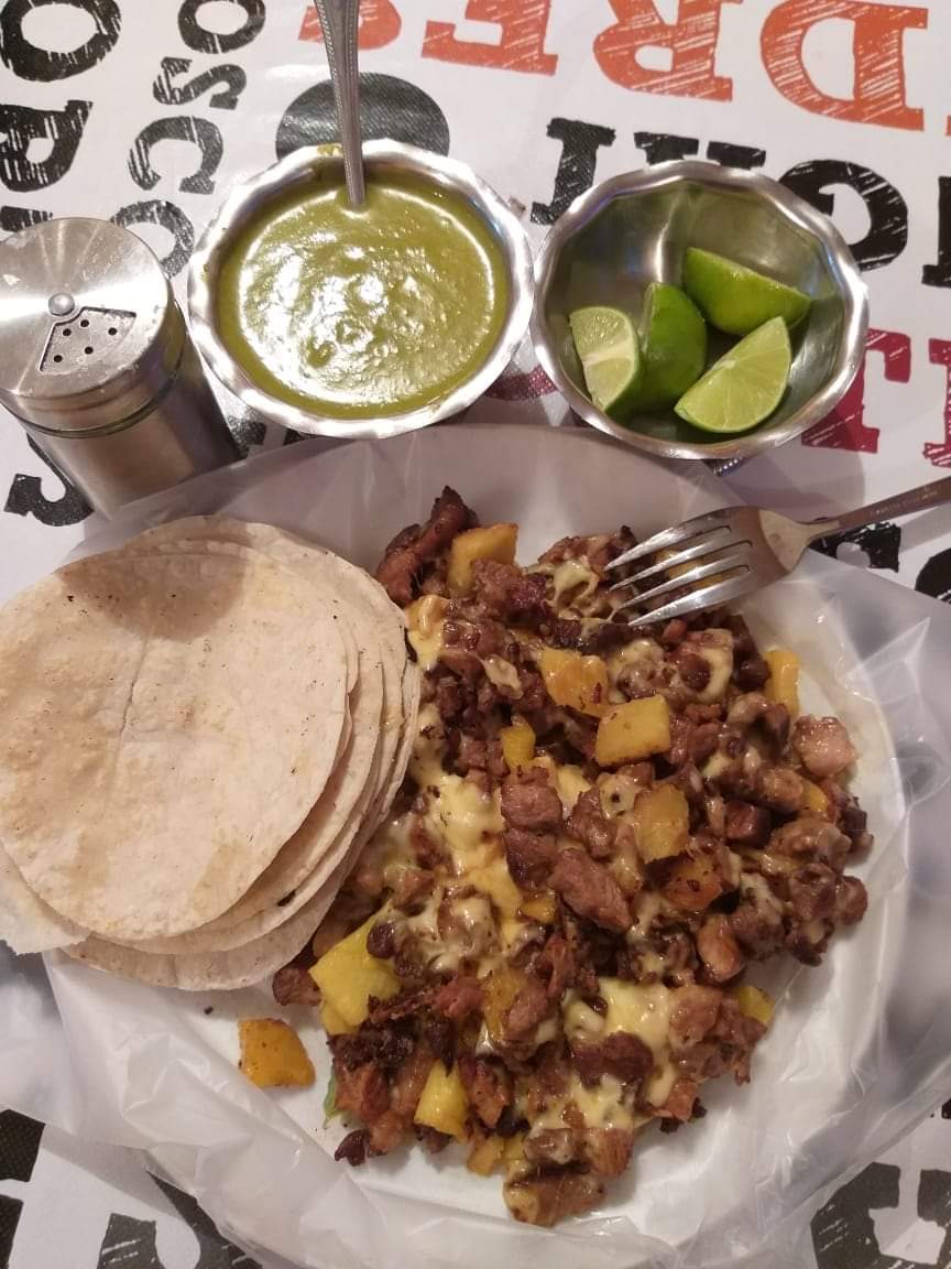 1 Orden de Papas con carne al pastor, queso, cátsup.